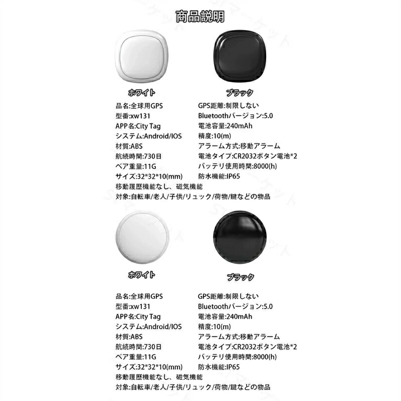2025年モデル発信機 GPS And 円形ブラック 円形ホワイト 方形ブラック 方形ホワイト 磁気がないApple 磁性吸着Apple&Android