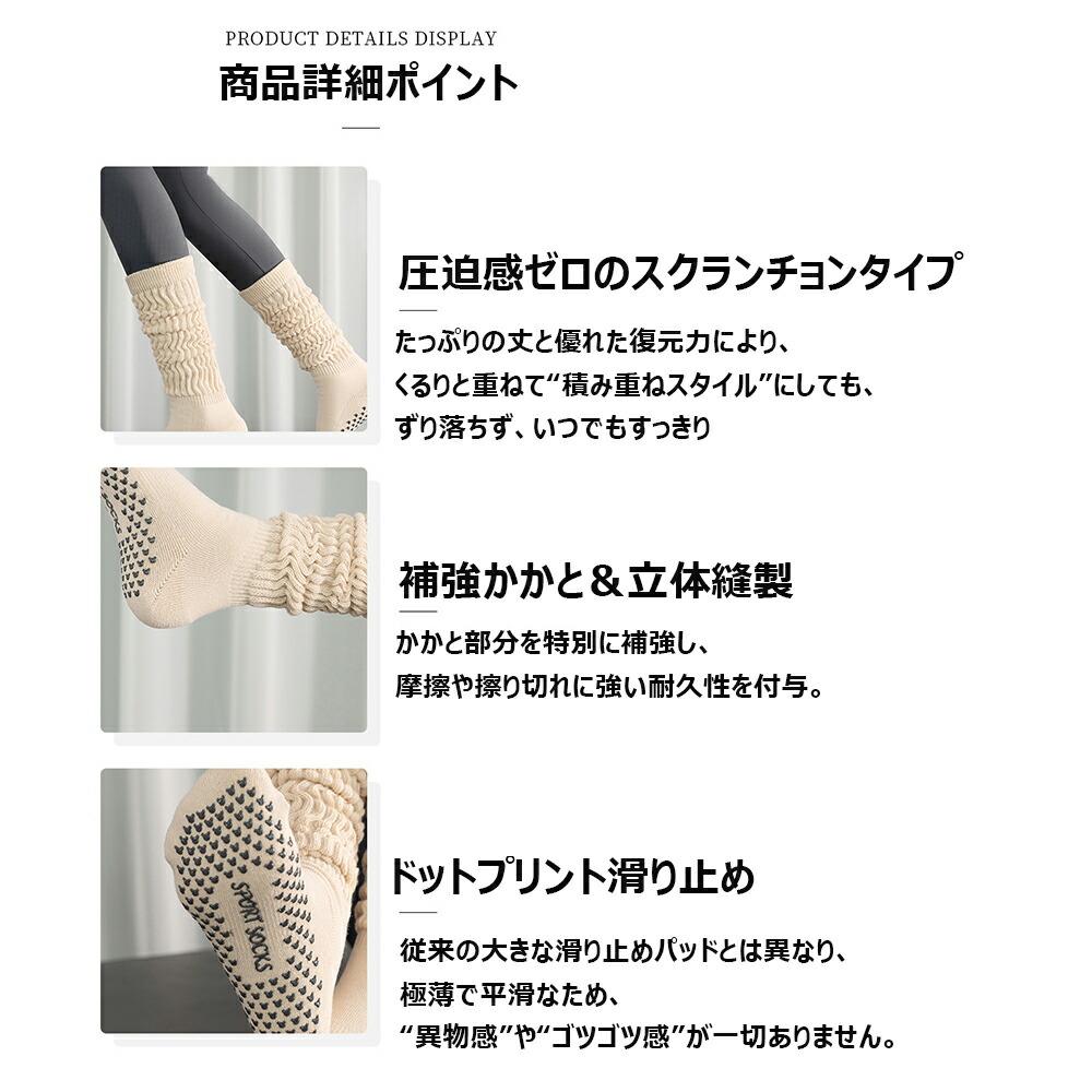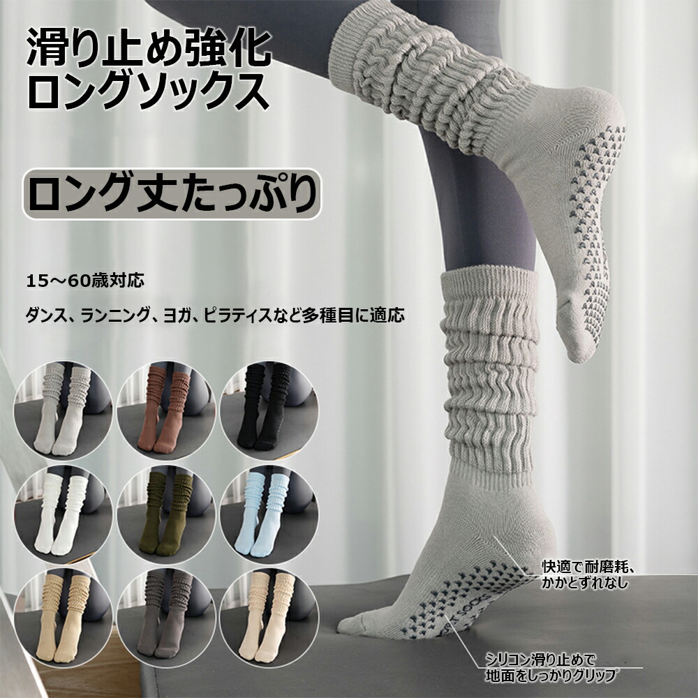 2足セット ロング丈ヨガ靴下 ヨガウェ グレーシーブルー モーニングブルー ホワイト アーモンドイエロー クラウドグレー スモークグレー ロックブラウン オリーブグリーン ブラック