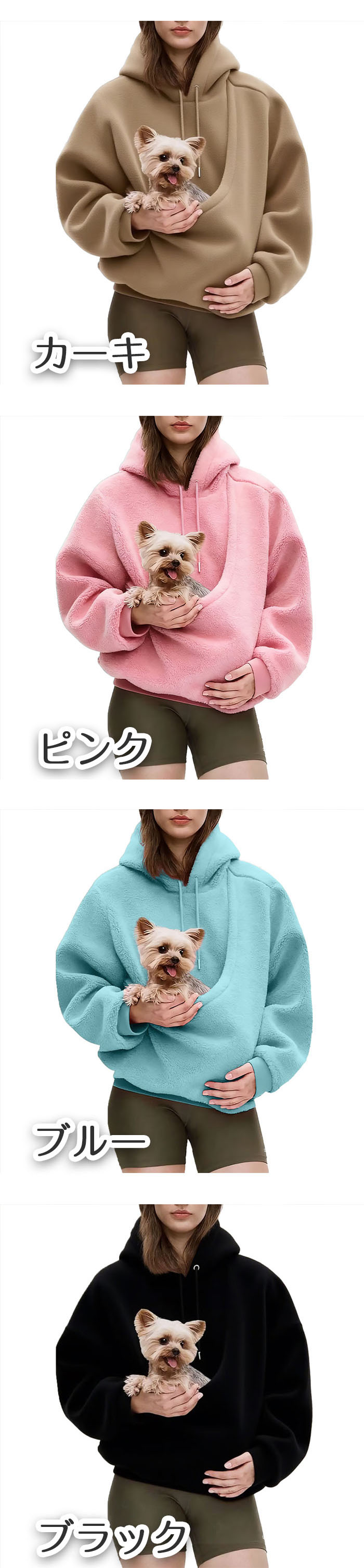 パーカー 猫抱っこ用服 レディース 猫 ペット ペットグッズ 豊富 カーキ ピンク ブルー ブラック ホワイト グレー ダークグリーン S M L XL 2XL