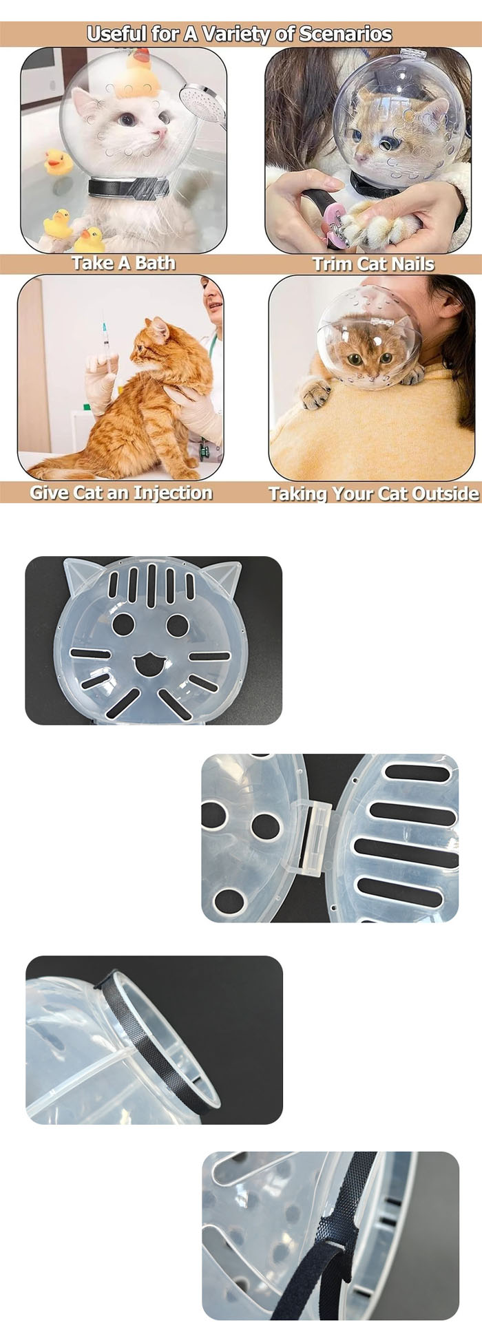猫用透明ヘッドカバー グルーミング用 猫用品 介護用品 豊富 S(13.5*12.7*13.5CM) L(14.7*14.1*14.7CM)