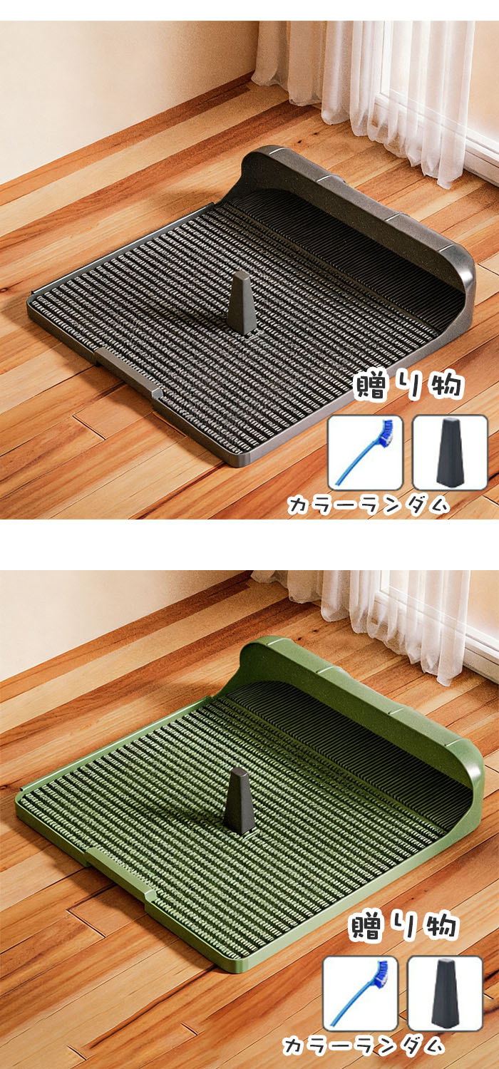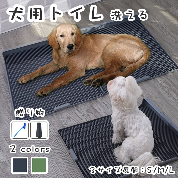 犬 トイレ トレー 柱付き 大型犬 中 ペット ペットグッズ 通販 グレー グリーン S(42x45cm) M(45x58cm) L(55x60cm)