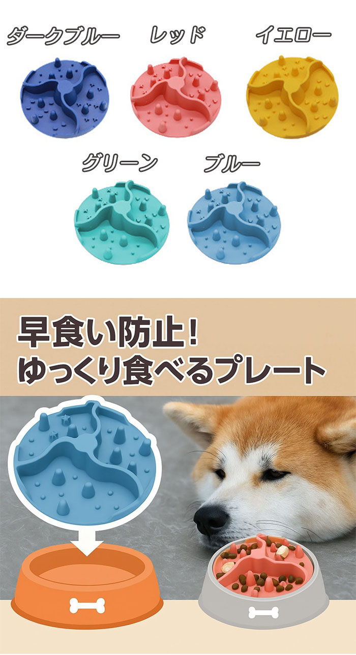 ペット 皿 食べ過ぎ防止 取り外しプレ ダークブルー レッド イエロー グリーン ブルー S M L