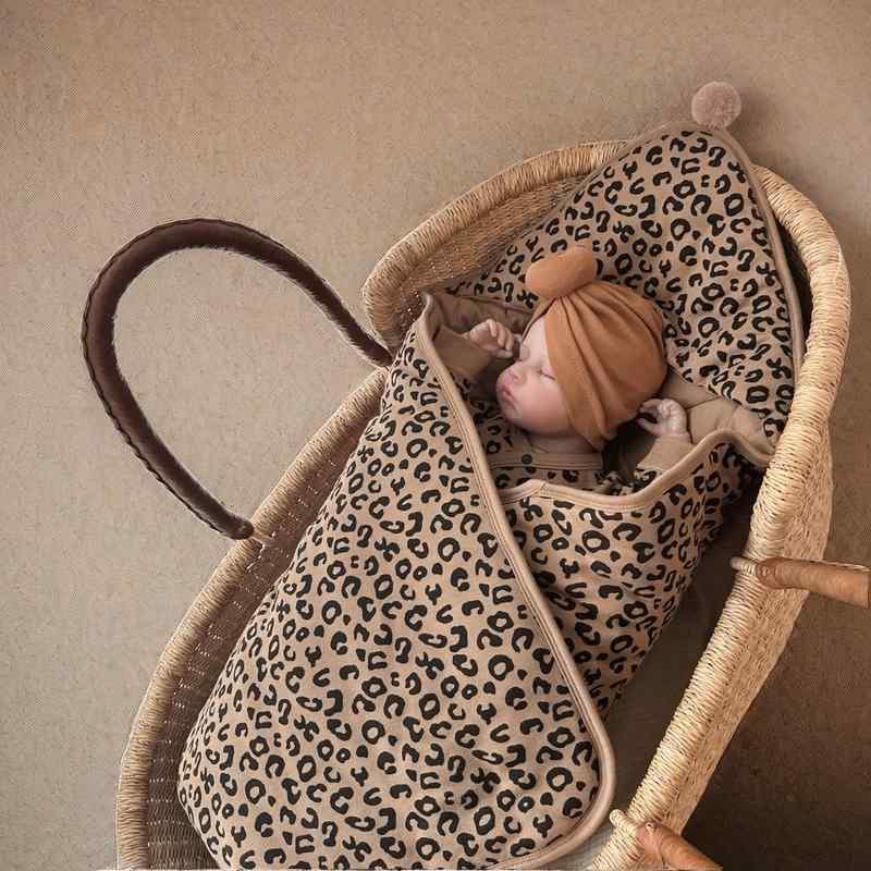 レオパード柄のおくるみで育児スタイルアップ 通年使える綿ベビーブランケット 出産祝いに最適な高級感 冬の保温性と肌触り抜群 洗えて便利な新生児必須アイテム