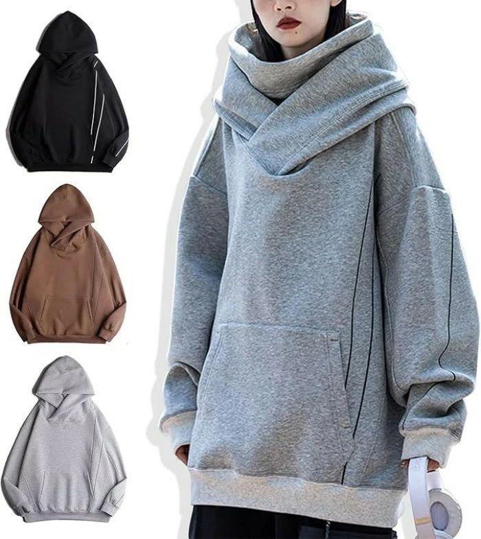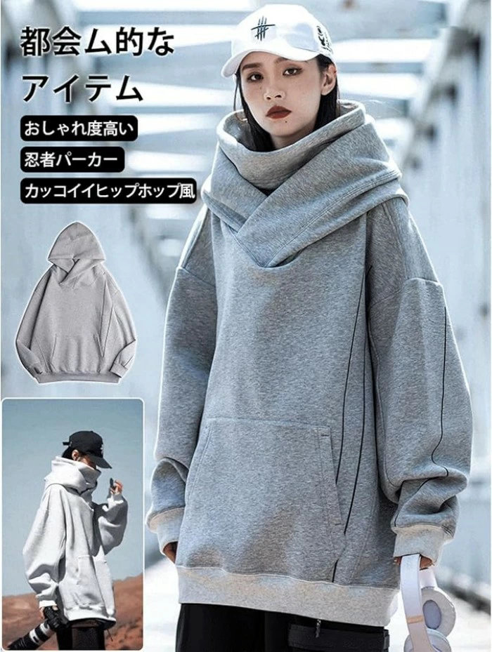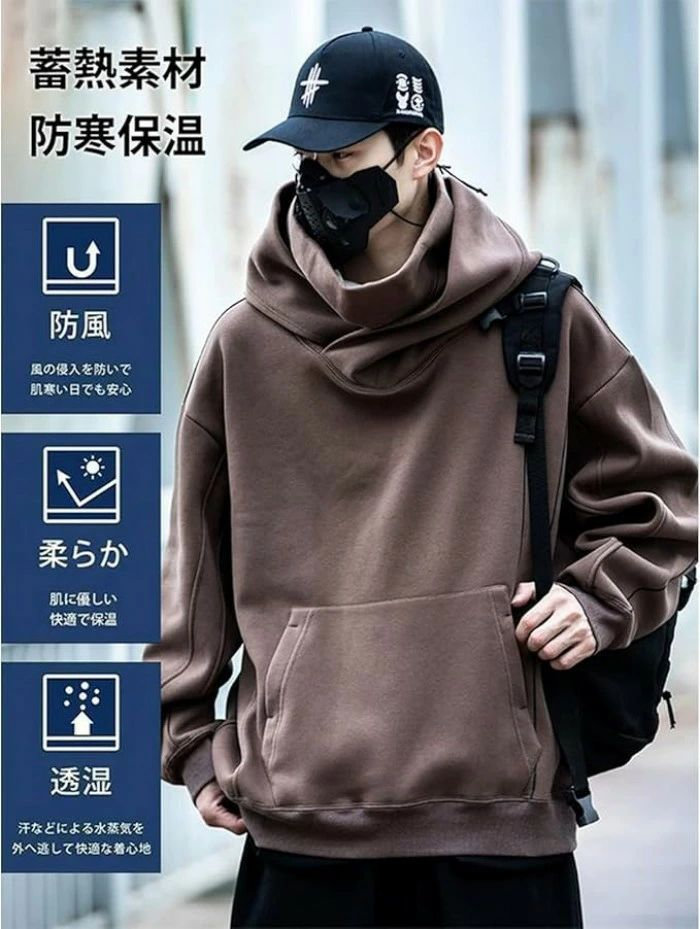 ボリュームネックパーカー カップル パ トップス パーカー 早い者勝ち ブラック グレー ブラウン M L XL 2XL 3XL