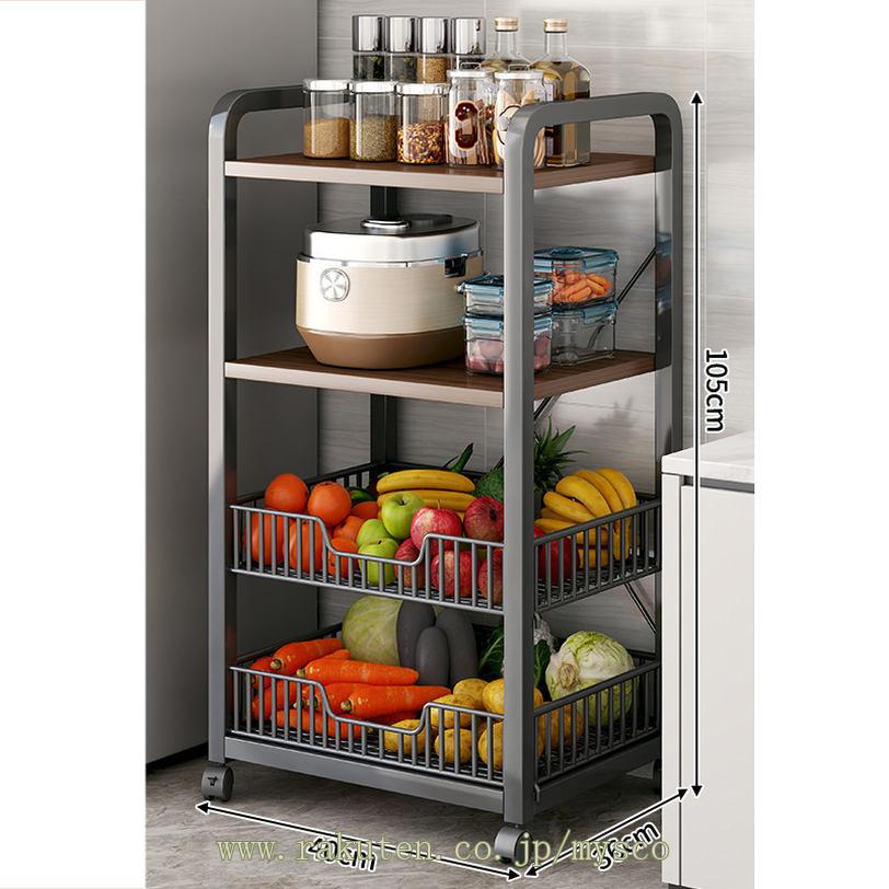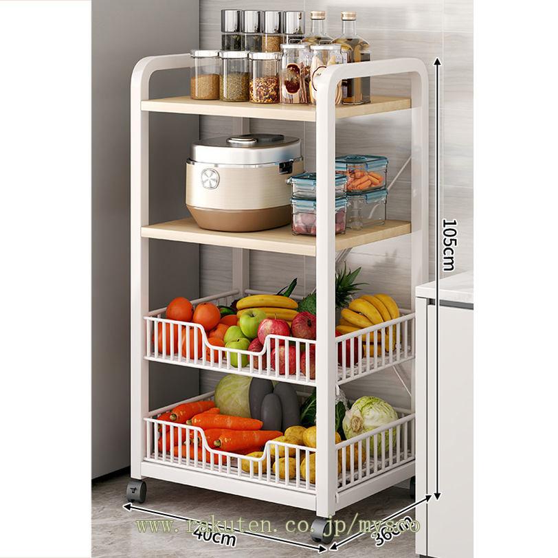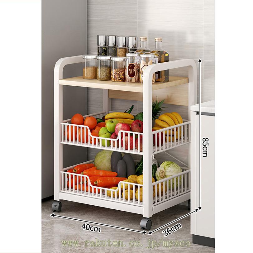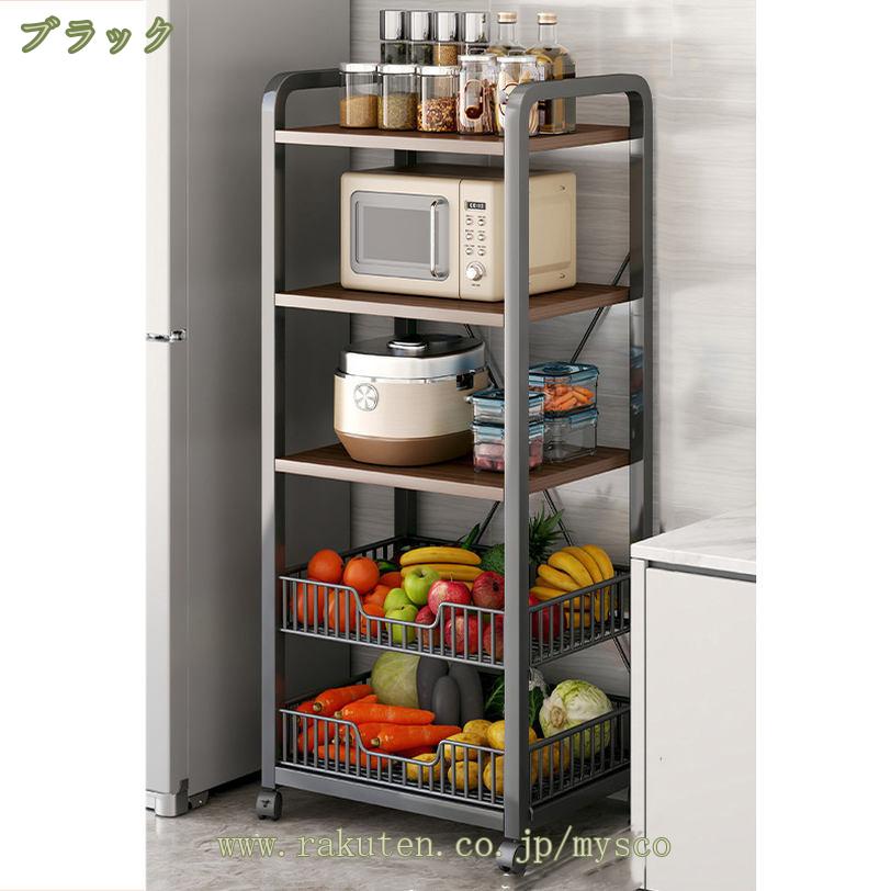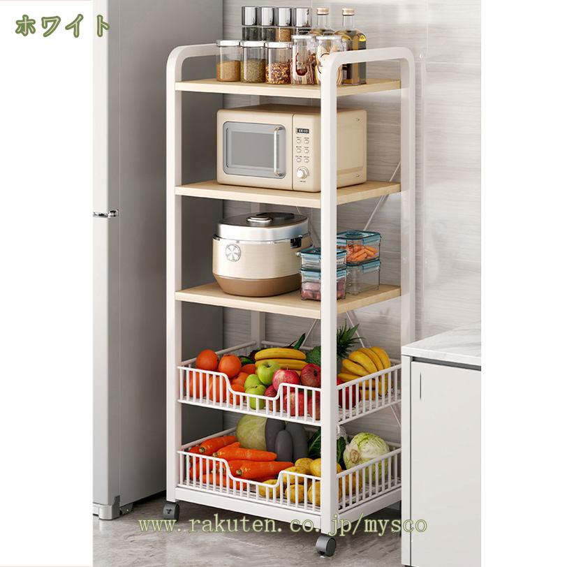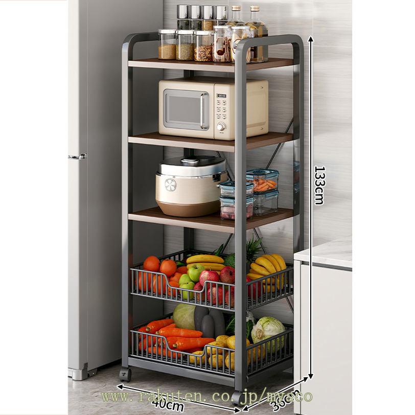 レンジ台 キッチンワゴン キッチンラック 水蒸気に強い キッチン レンジ ラック 40幅 収納 移動便利 キャスター付き バスケット付き スリム キッチンボード シェルフ 台所収納 スリ キッチン収納