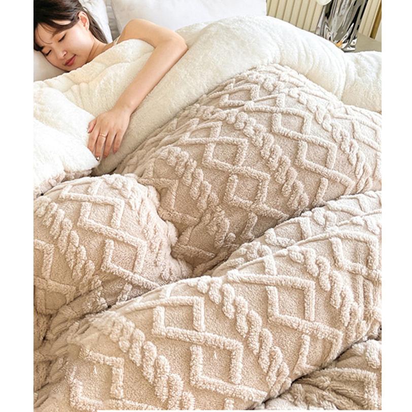 布団 掛けふとん 冬用掛け布団 フリース 冬毛布団 両面ベルベットキルト ダブル掛け布団 無地 ブランケット 防寒 大人兼用 厚く暖かい フランネル ピーチスキン加工 ふんわり
