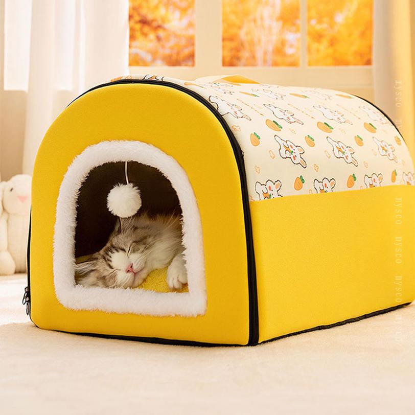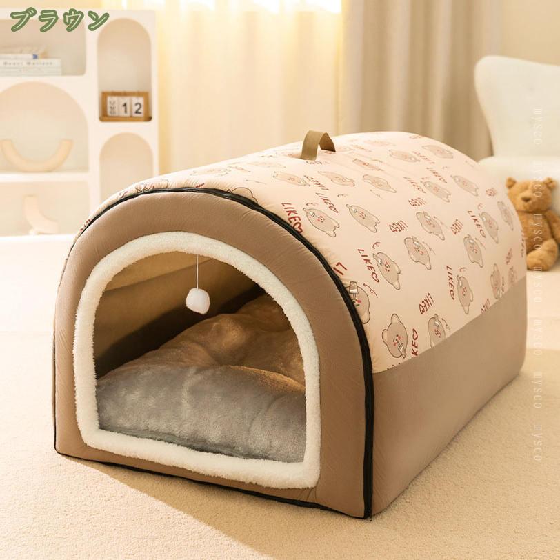 猫 ベッド 冬 猫ハウス ペットベッド ペット ペットグッズ 早い者勝ち ブラウン グレー イエロー 48*38cm 60*45cm 75*55cm 90*65cm 100*75cm