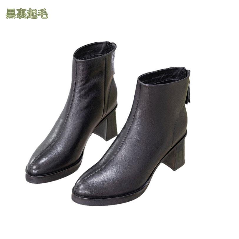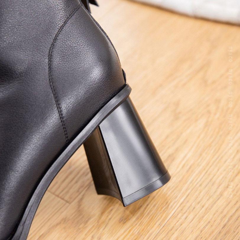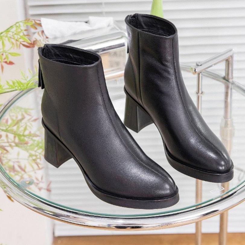 ポインテッドトゥブーツ レディース バックジップ 黒 厚底 ショートブーツ 5.0cmヒール 歩きやすい 疲れない 本革 柔らかい チャンキーヒール 靴 アンクルブーツ 袴 太ヒール ブラ ブーティー
