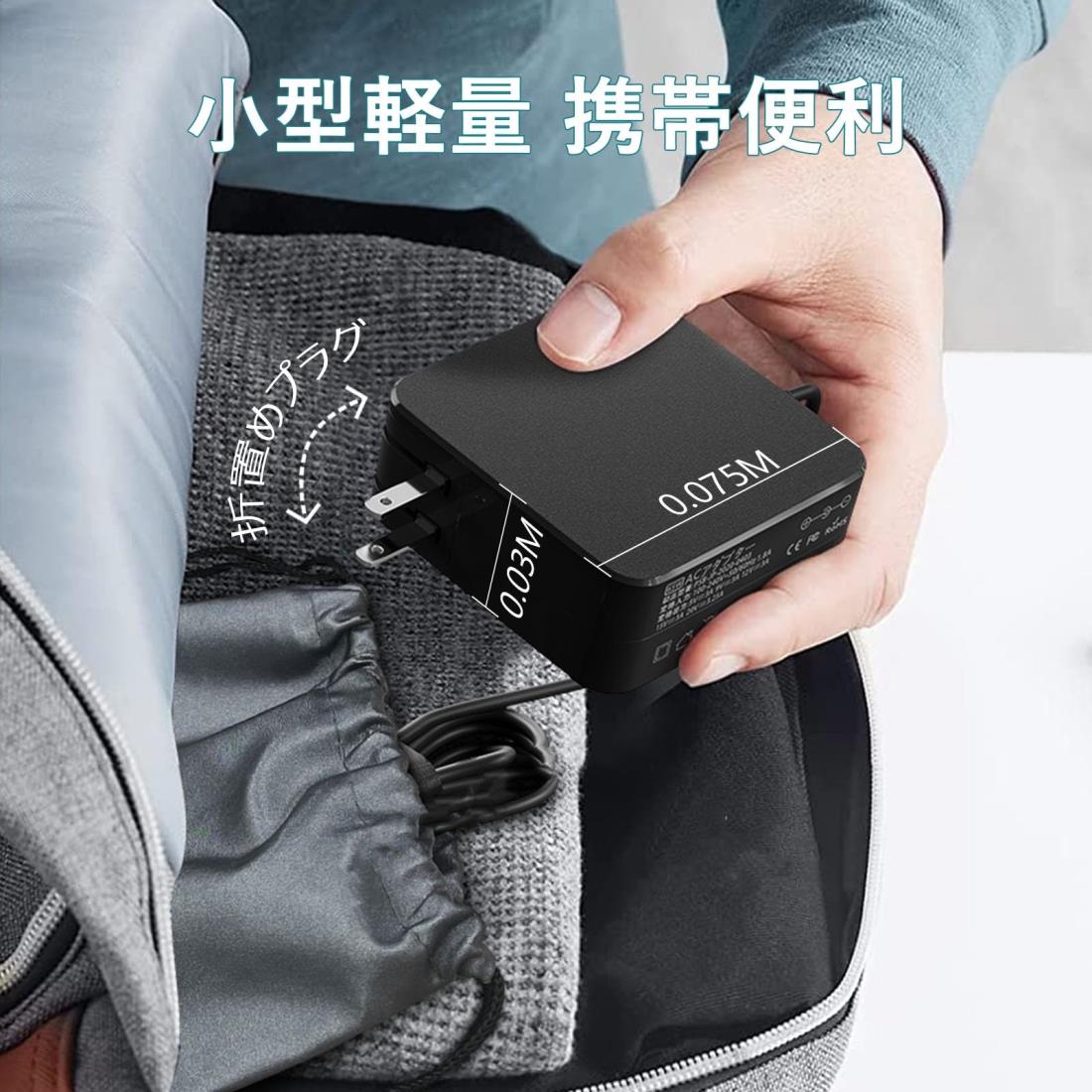 【携帯便利】収納袋が付いていて収納に便利 。65W acアダプターは高出力を実現すると同時に、収納しやすい折畳式プラグ採用、ポケットやバッグににすっぽり収まるコンパクトなサイズで、持ち運び易いし、使い方も簡単です。世の中の電圧(AC100-240 V)に対応しているので、国内旅行も海外旅行にも最適、お宅、オフィス、出張、旅行などに不可欠な好物です。内外部問わず頑丈な素材で加工を施し擦り傷がつきにくく、落下時の衝撃に強い耐久性能も実現します。