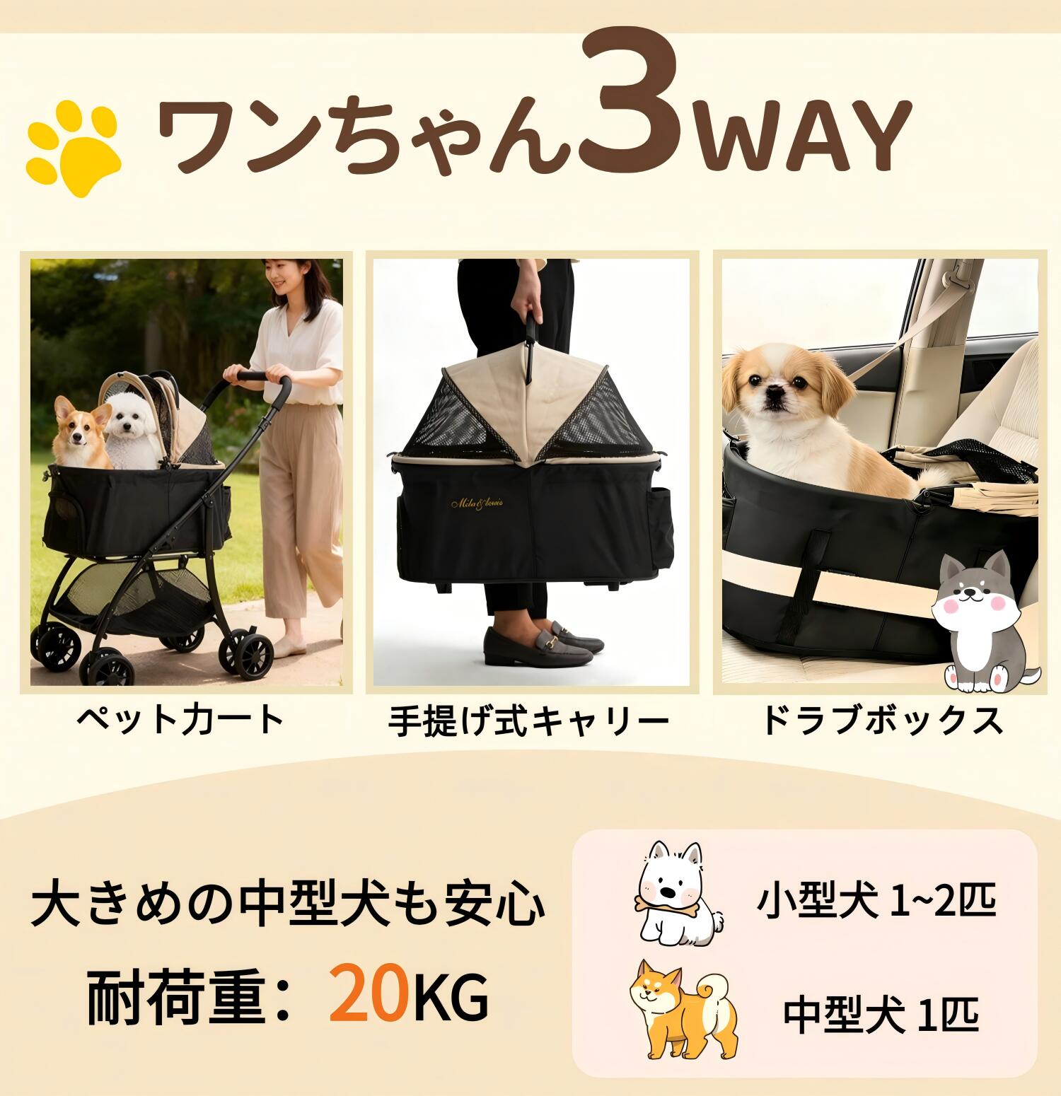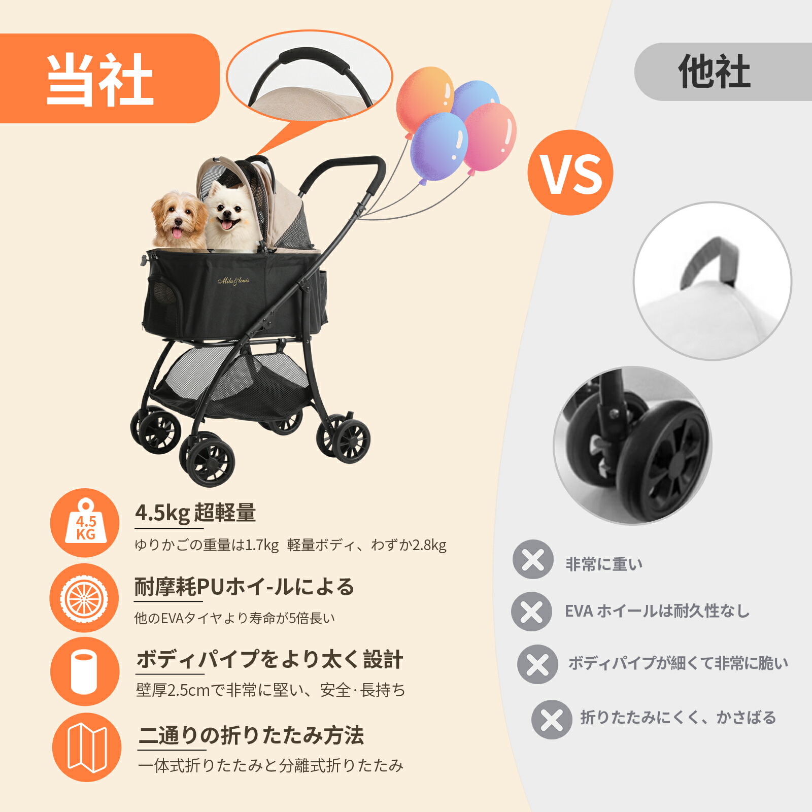 4.5KG 超軽量 ペットカート 3way MILA&LOUIS 分離型 折りたたみ 対面式 犬カート 多頭 小型犬 中型犬 軽量 犬用カート 4輪耐摩 人気 犬 バギー ドッ おすすめ