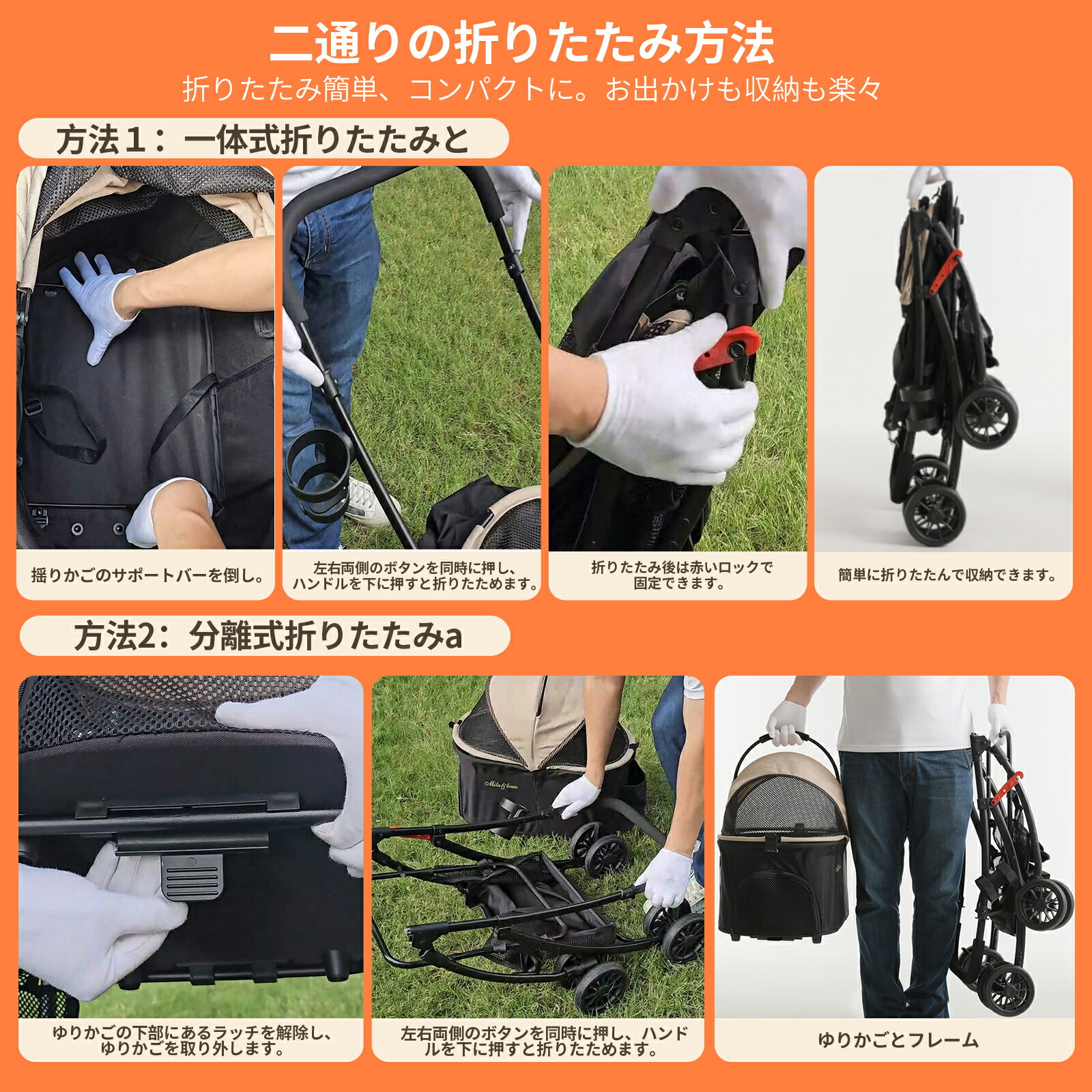 犬 バギーはワンタッチ折りたたみ対応:工具不要で簡単組み立て、すぐ使用可。