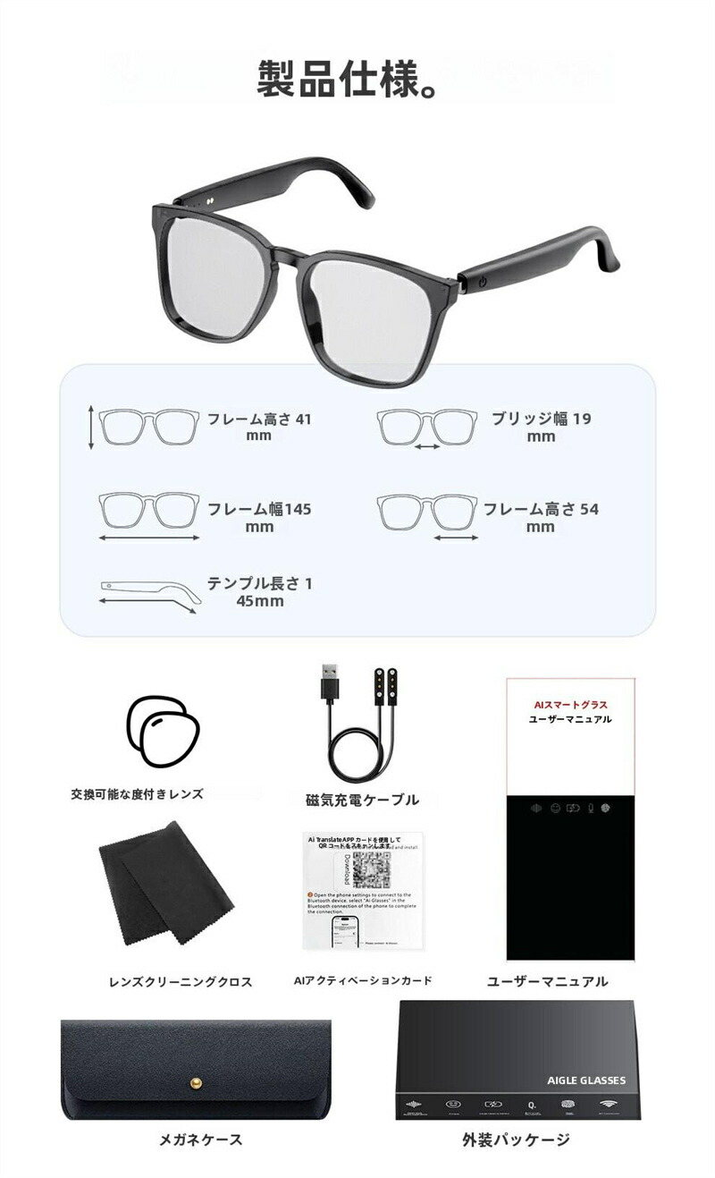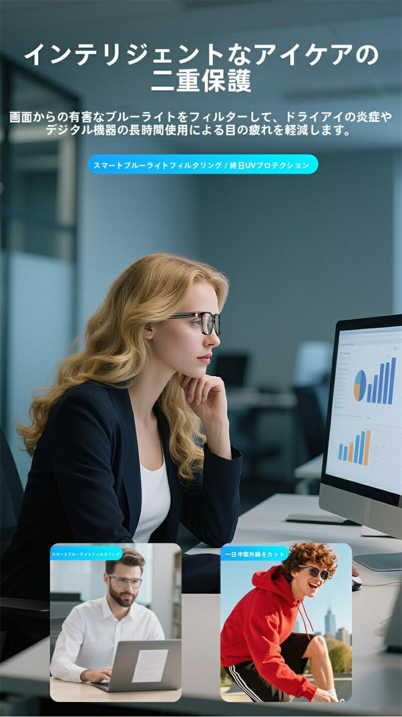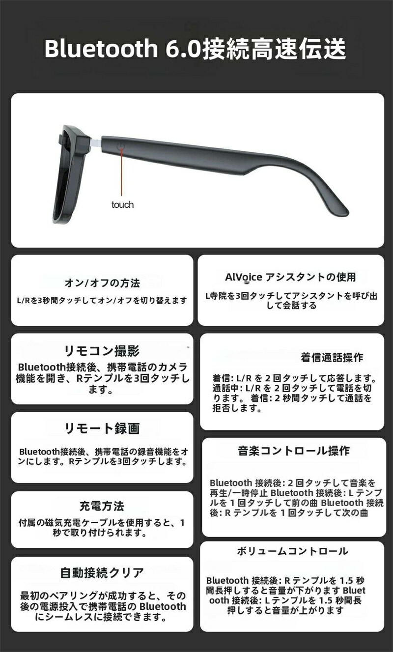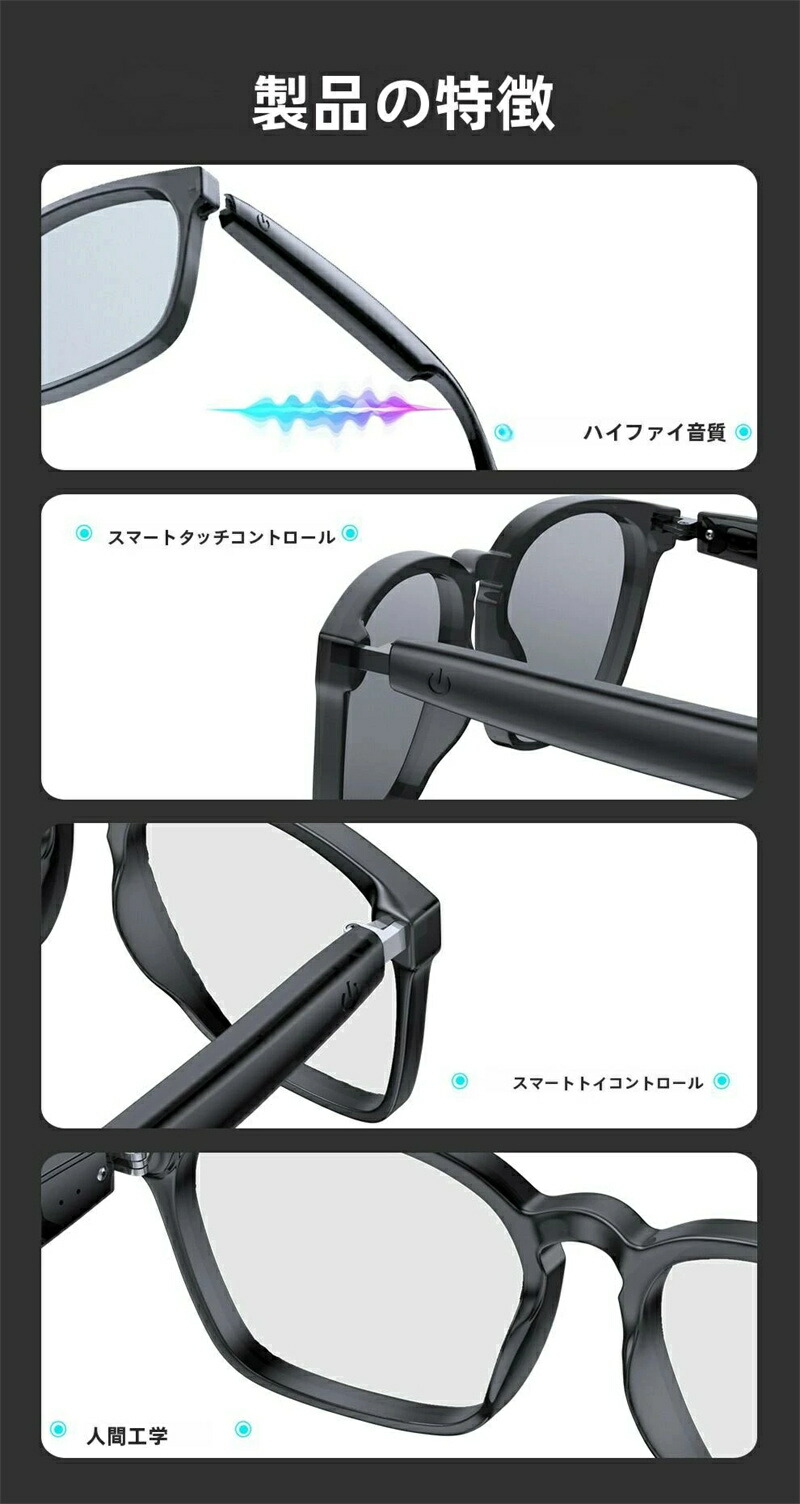 スマートグラス Bluetooth5. サングラス ブルーライトカット ブラック ホワイト