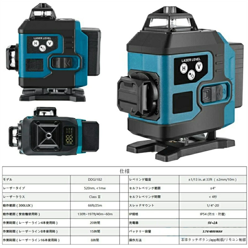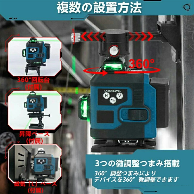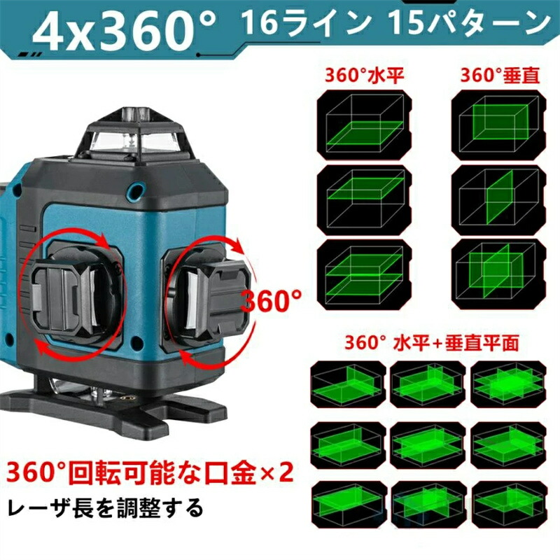 レーザー墨出し器 グリーンレーザー 水 16ライン(三脚なし) 16ライン(三脚付き)