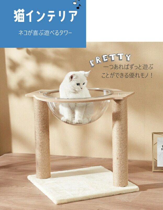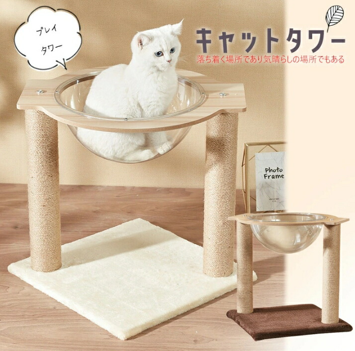 キャットタワー 据え置き 木製 猫 ペ ホワイト ブラウン