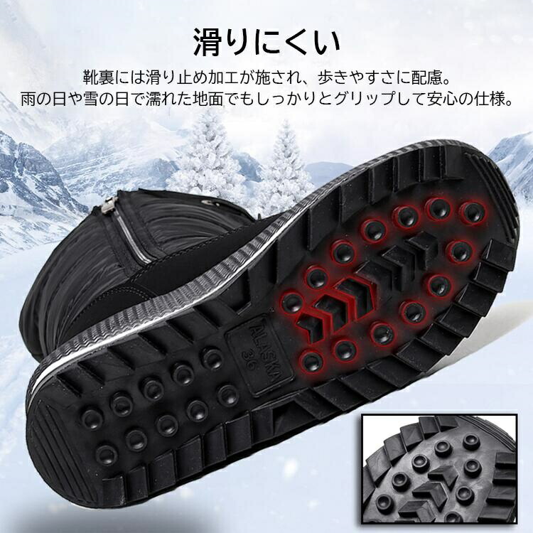 【ファスナー設計】で履き脱ぎ簡単。長時間の着用やウォーキングに最適な雪用ブーツです。