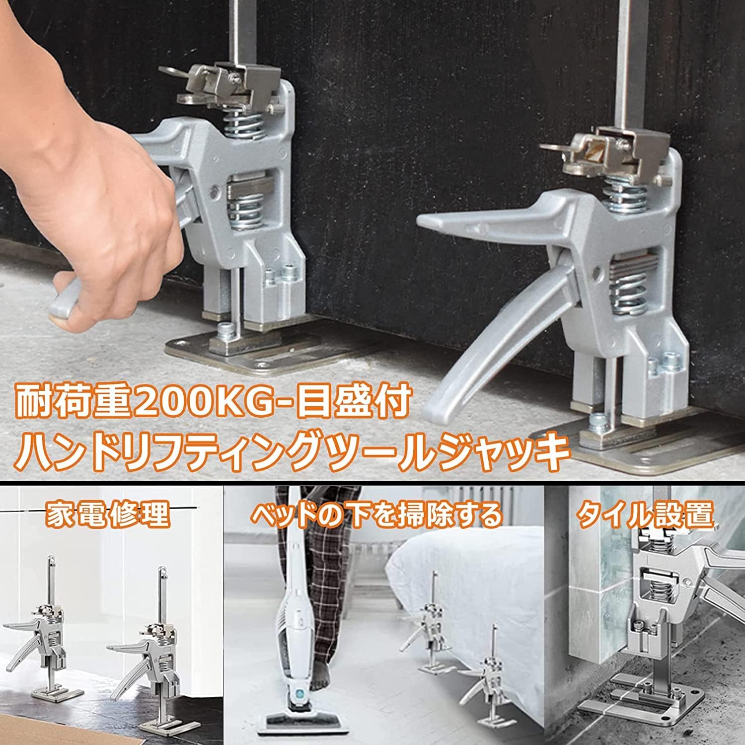 ジャッキ 定規付 耐荷重200kg ソリッドスチール製 ハンドリフティングツールジャッキ ミニ昇降器 労力節約アームジャック ドア 建具取付の高さ調節 リフト装置 ボードリフター 窓 手動 軽 タイル
