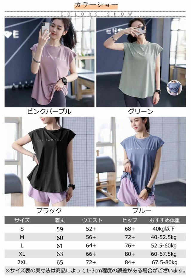 ヨガウェア 半袖 Tシャツ レディース ヨガ ピラティス ウェア トップス 早い者勝ち グリーン ブラック ブルー ピンク S M L XL 2XL