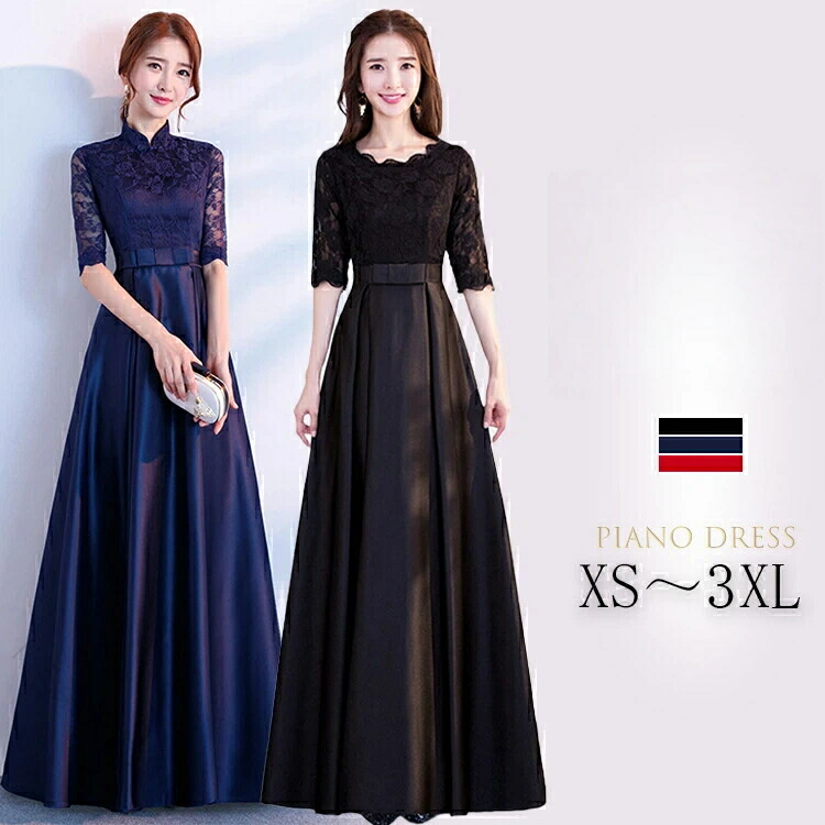 大人ピアノ発表会 高校生パーティードレ ドレス 新登場! XS(SS) S M L XL(2L) 2XL(3L) 3XL(4L) レッド ネイビー ブラック