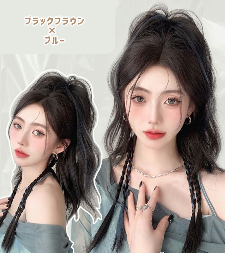 ウィッグ ポニーテール 自然 レディー バッグ 小物 ブランド雑貨 豊富な品揃え ブラックブラウン×ブルー ブラックブラウン×ピンク アッシュブラウン×ブルー アッシュブラウン×ピンク ブラック ブラックブラウン ダークブラウン ライトブラウン