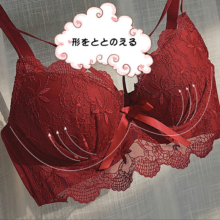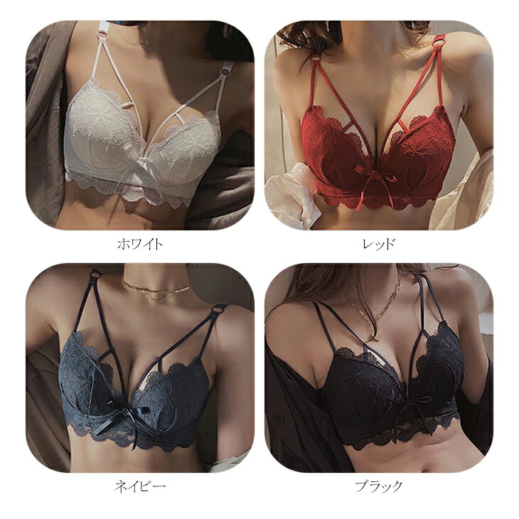 ノンワイヤーブラ ショーツ 上下セット 2点セット 刺繍 リボン パッド一体型 ブラトップ ブラジャー アンダーウェア 揺れない 美乳 育乳 U字バック 脇高 肉厚パッド 下着