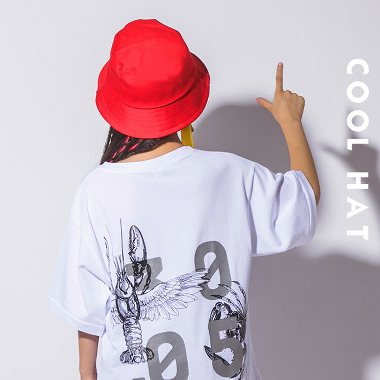 ダンス バケットハット 帽子 キッズ 男の子 女の子 大人 ストリート カジュアル カラフル 原色 ブラック ホワイト レッド パープル ユニセックス こども服 韓国ファッションオールシーズ オレンジ