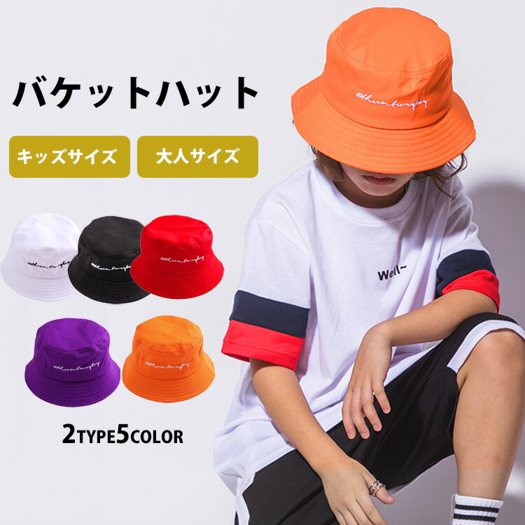 ダンス バケットハット 帽子 キッズ キッズ 帽子 ハット 特集 キッズサイズ(頭囲約52cm) 大人サイズ(頭囲約58cm) ホワイト ブラック レッド パープル オレンジ
