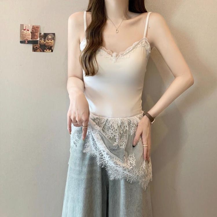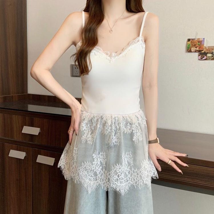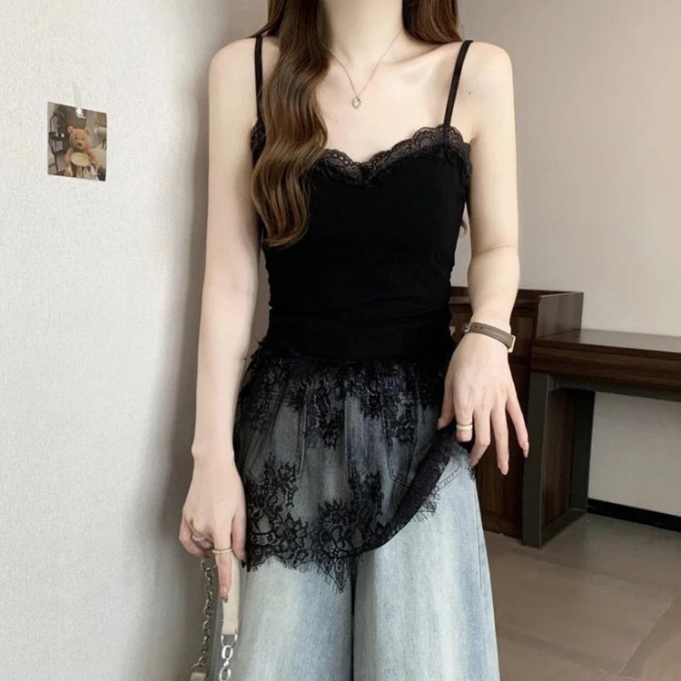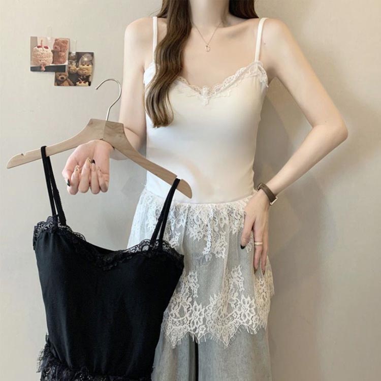 重ね着 レース切り替え キャミソール トップス キャミソール 人気 ホワイト ブラック M L