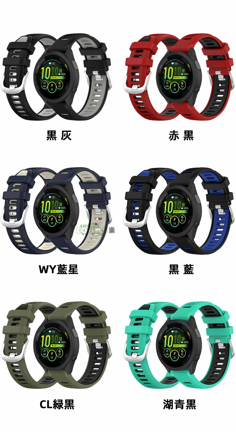 在庫発送 Garmin Forerun 22MM 18MM 黒灰 赤黒 WY藍星 黒藍 CL緑黒 湖青黒 黒レモン 星黒 灰黄 白青緑 白ピンク 白藍