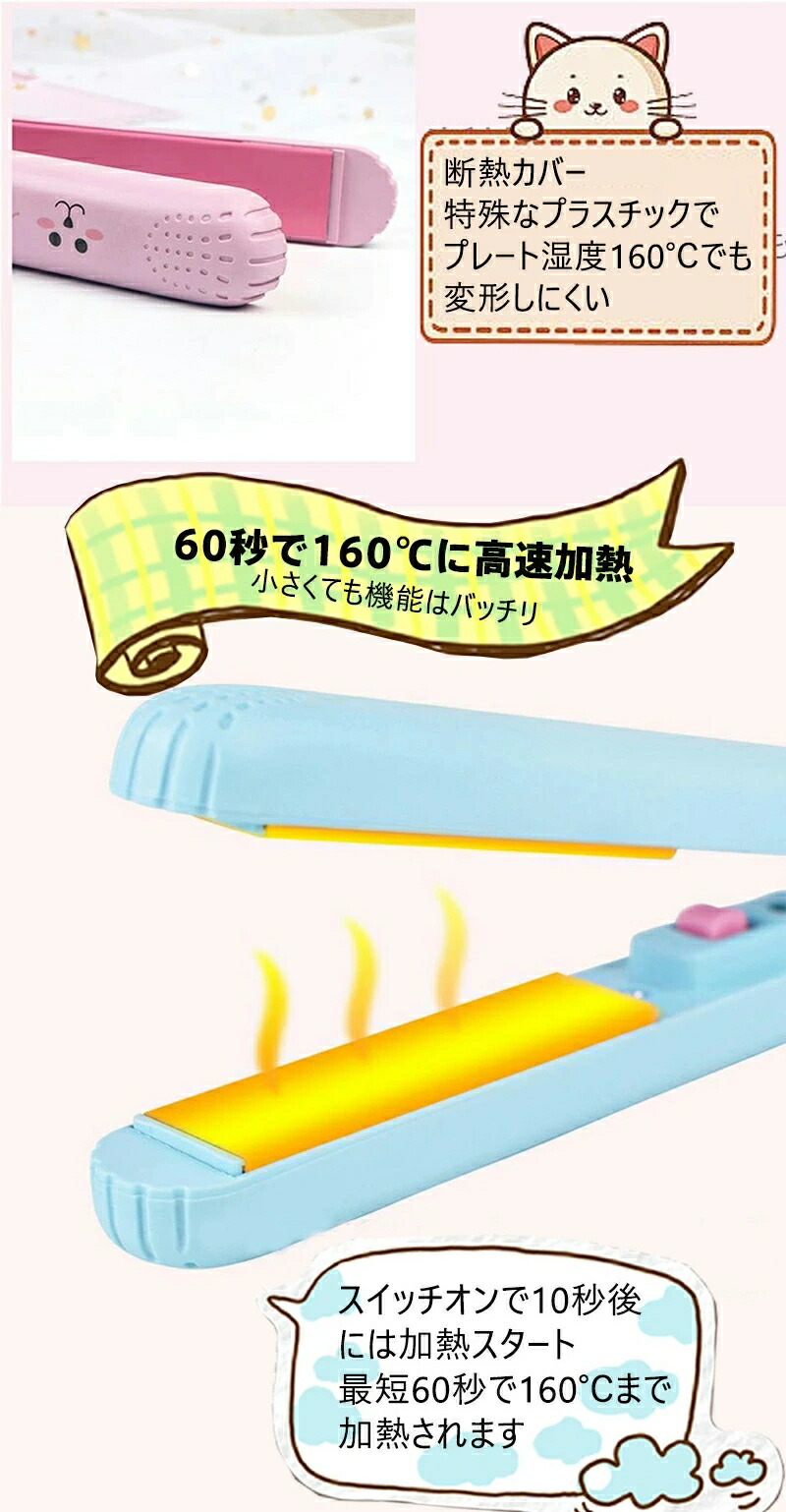 ヘアアイロン ミニ ストレートアイロン ピンク ホワイト ブラウン イエロー ブルー パープル ミントグリーン