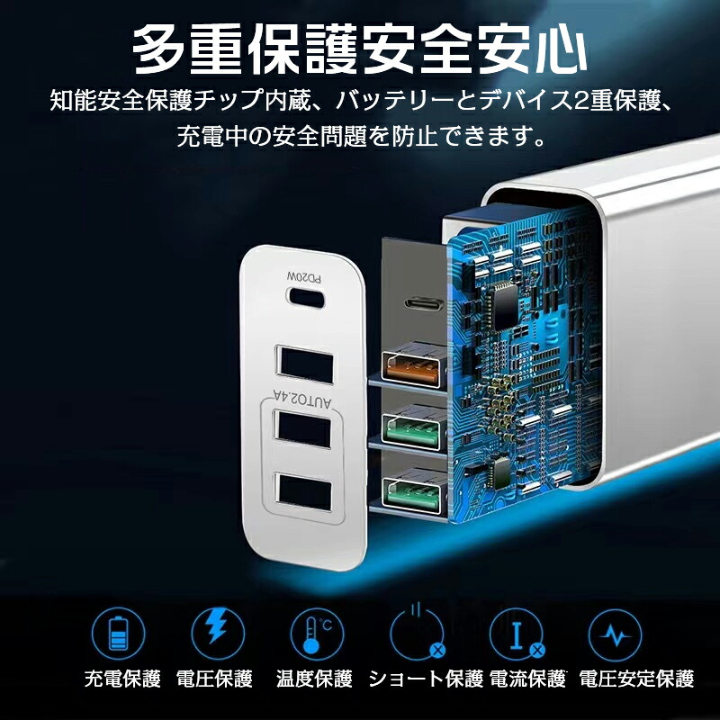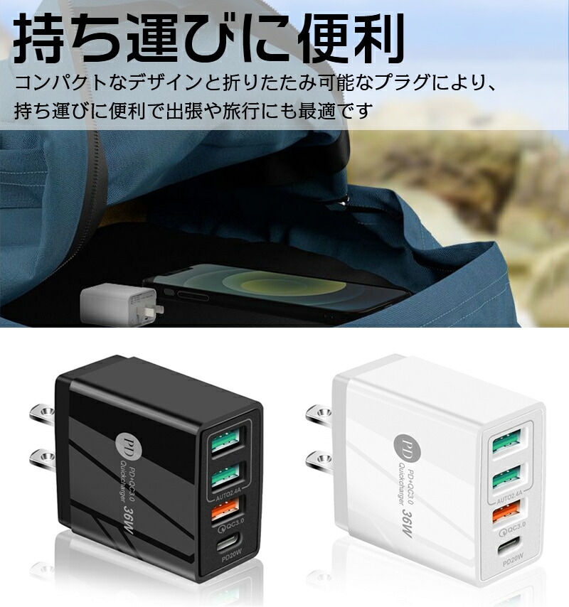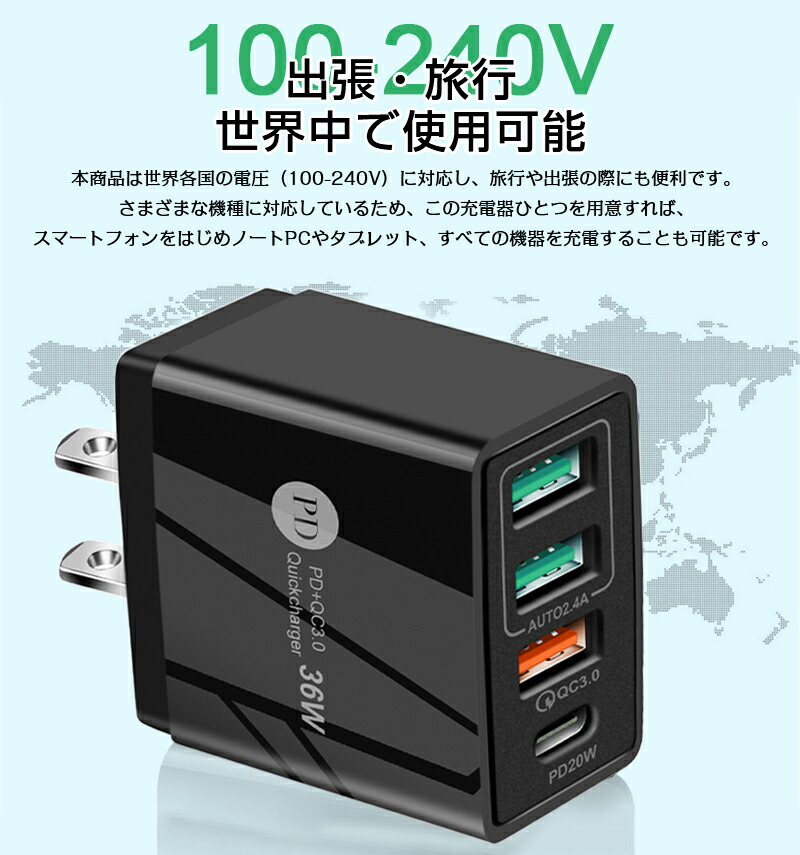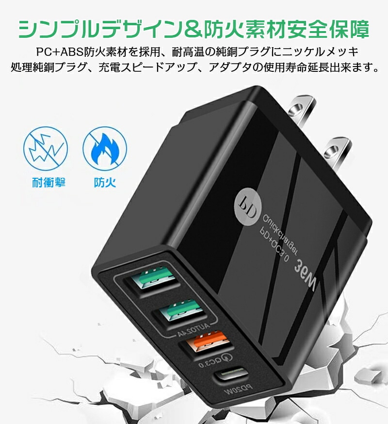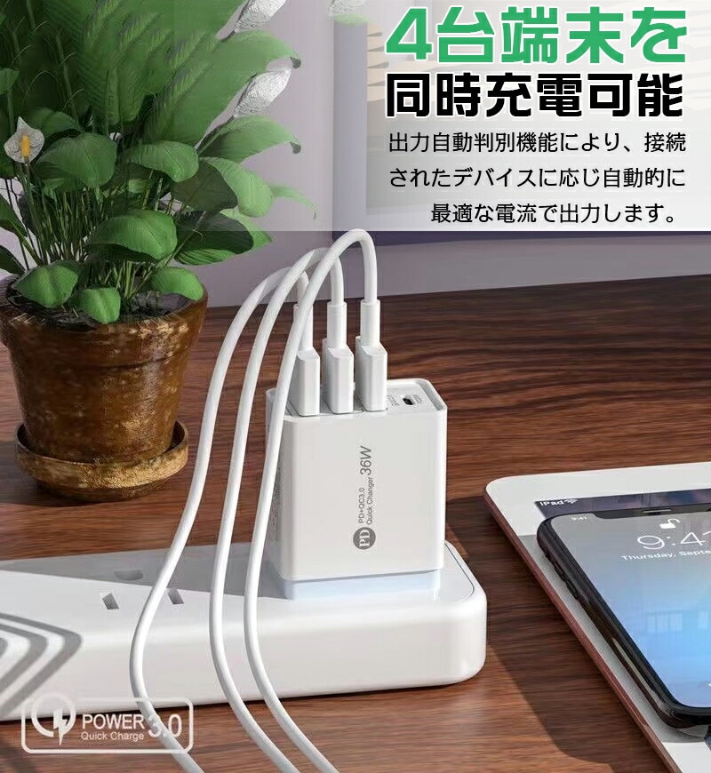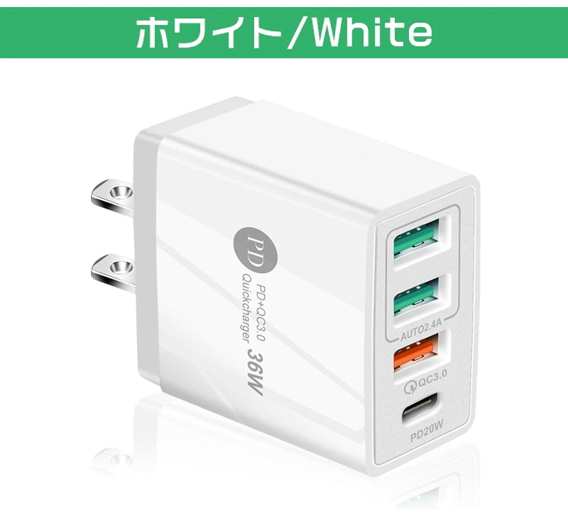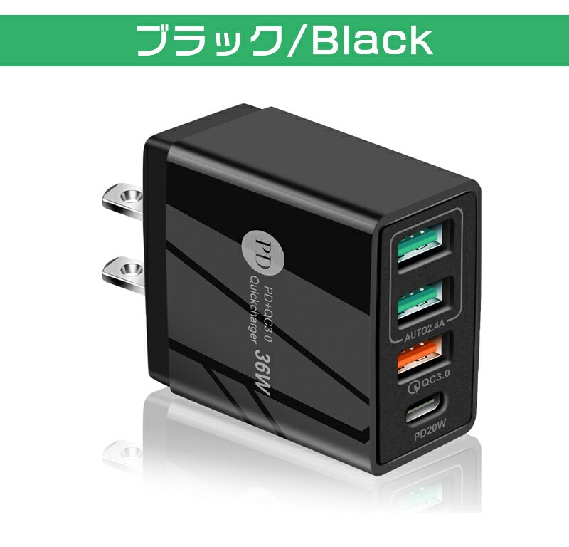 4台同時充電 急速充電 充電器 変換ア ブラック ホワイト