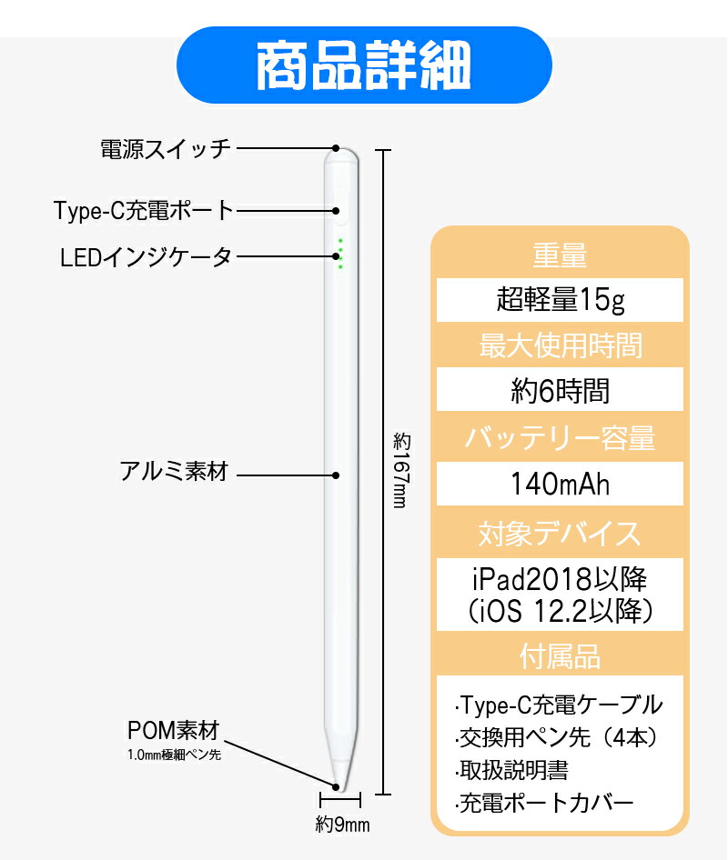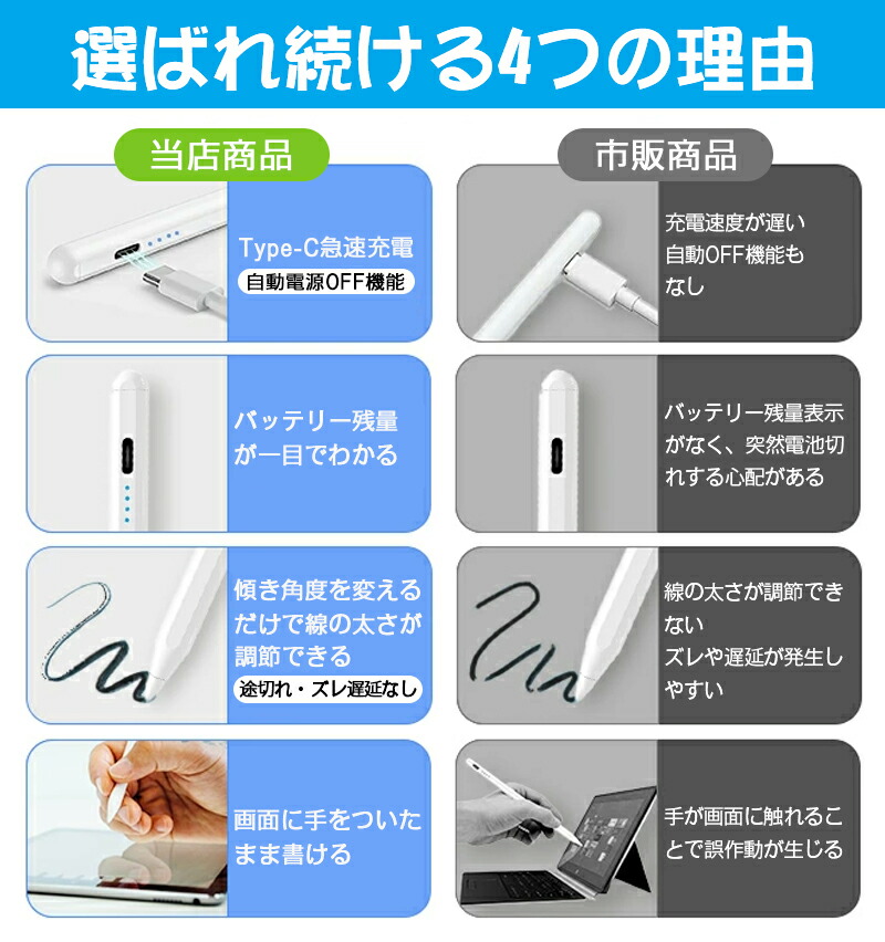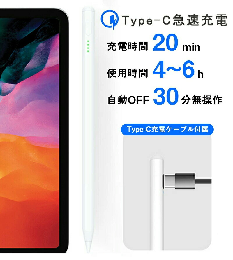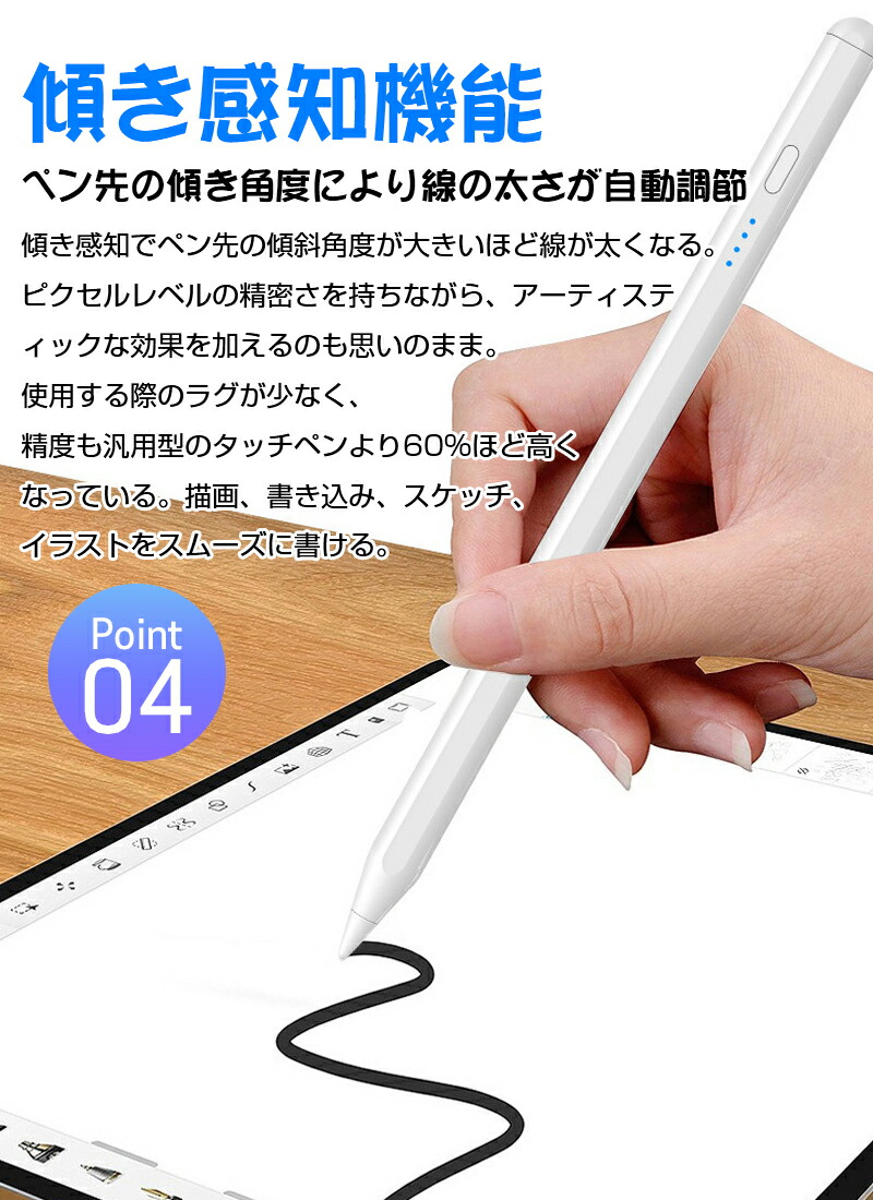 iPad専用高性能タッチペン タッチペン タブレット スマホ イラスト ゲーム ビジネス iPad iPhone iOS用ペン タッチペンスタイラスペン 超高感度 軽量 充電 ペン