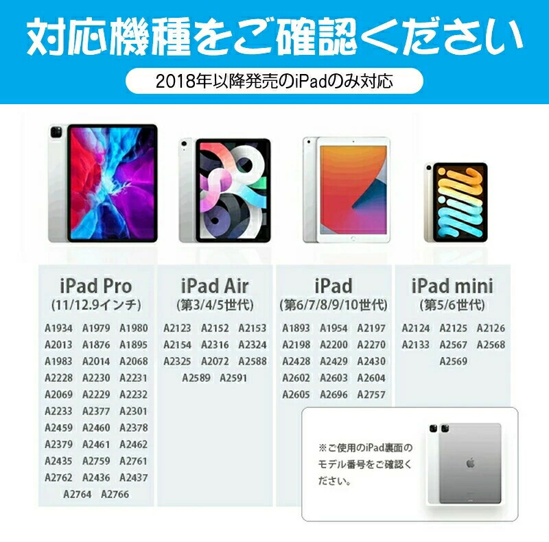 iPad Pro 12.9インチ 第6世代(2022) iPad Pro 11インチ 第4世代(2022) iPad Pro 12.9インチ 第5世代(2021) iPad Pro 11インチ 第3世代(2021) iPad Pro 12.9インチ 第4世代(2020) iPad Pro 11インチ 第2世代(2020) iPad Pro 12.9インチ 第3世代(2018) iPad Pro 11インチ 第1世代(2018) iPad 第10世代 10.9インチ(2022) iPad 第9世代 10.2インチ(2021) iPad 第8世代 10.2インチ(2020) iPad 第7世代 10.2インチ(2019) iPad 第6世代 9.7インチ(2018) iPad Air 第5世代 10.9インチ(2022) iPad Air 第4世代 10.9インチ(2020) iPad Air 第3世代 10.5インチ(2019) iPad mini 第6世代 8.3インチ(2021) iPad mini 第5世代 7.9インチ(2019)