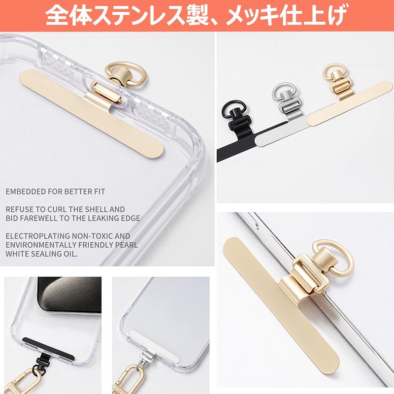 スマホ ストラップホルダー 金属製タグ スマートフォン 携帯電話用アクセサリー スマートフォン用ホールドリング 続々登場 ブラック シルバー ゴールド ローズゴールド