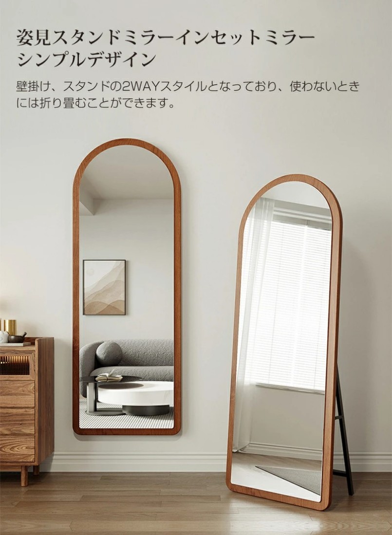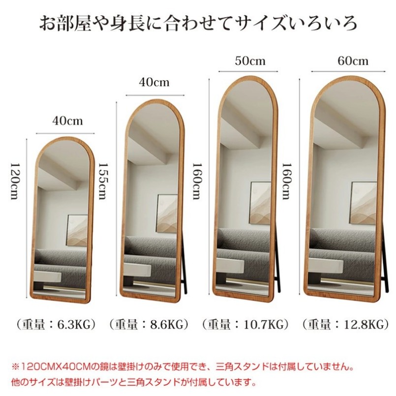 ミラー 全身鏡 姿見 鏡 スタンドミラ ブラウン ナチュラル ホワイト 120cmx40cm 155cmx40cm 160cmx50cm 160cmx60cm