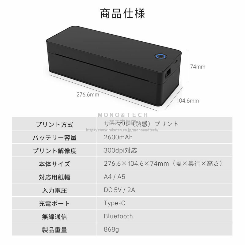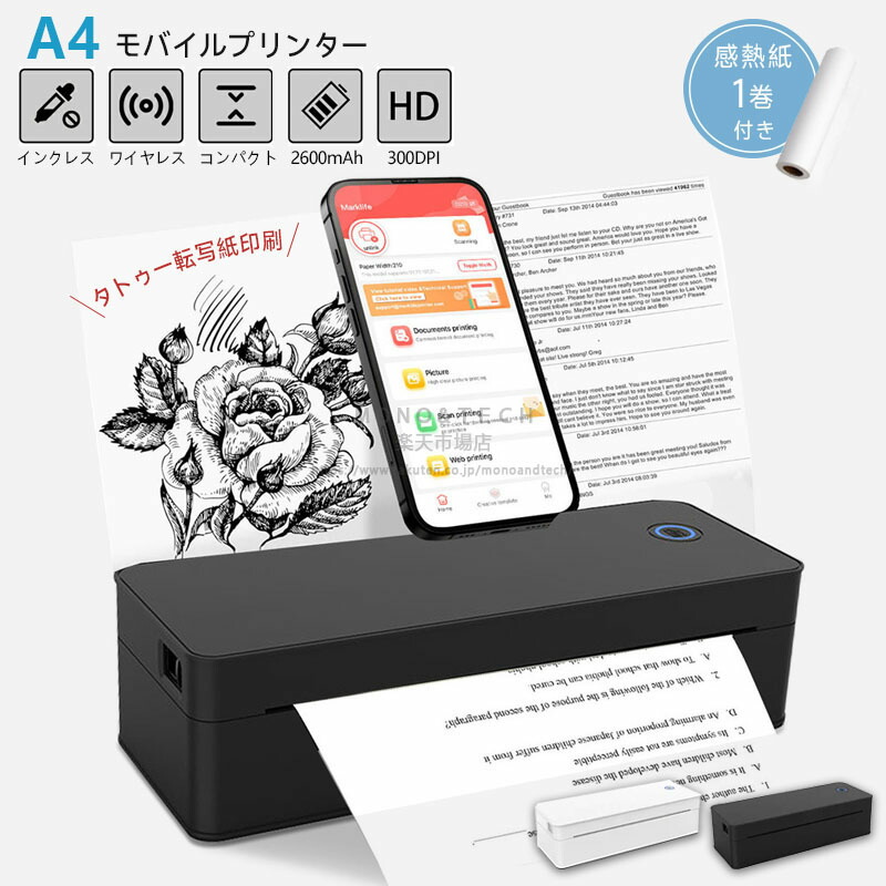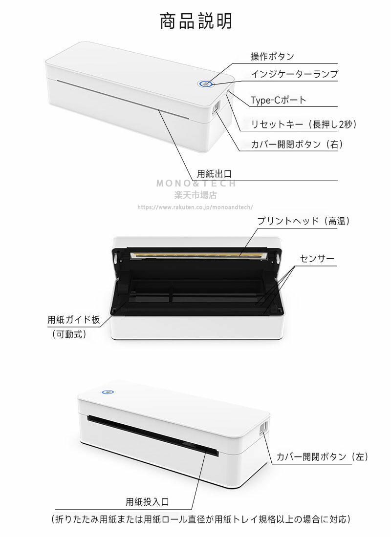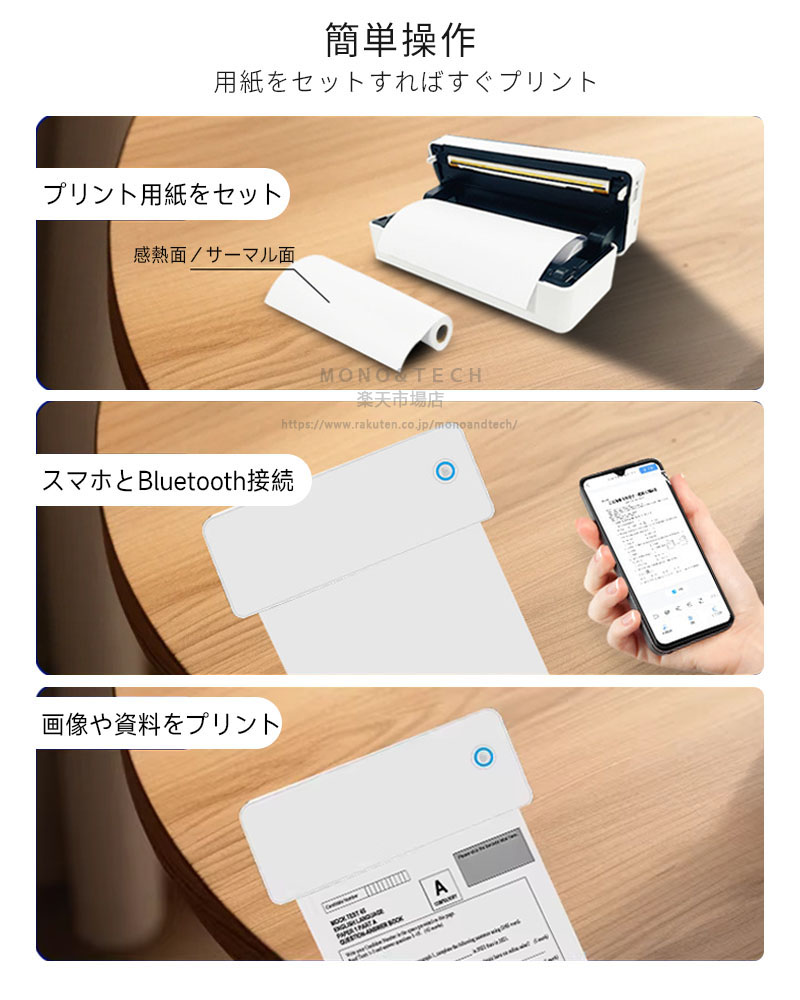 モルミニバイプリンタ サループリンーマ ホワイト ブラック USB+BT+300dpi 本体なし