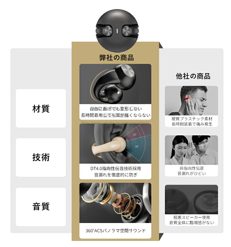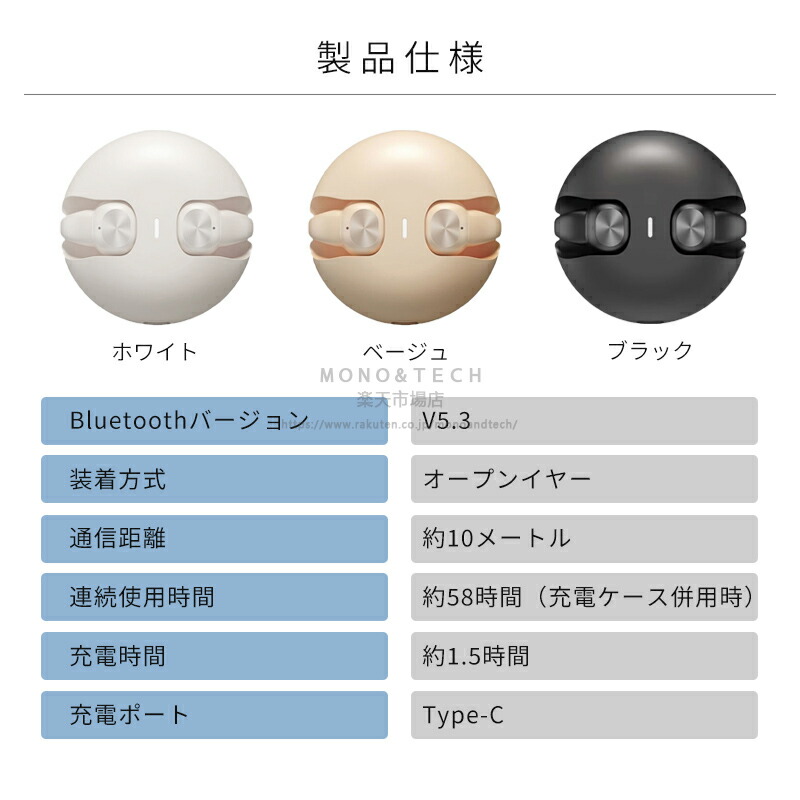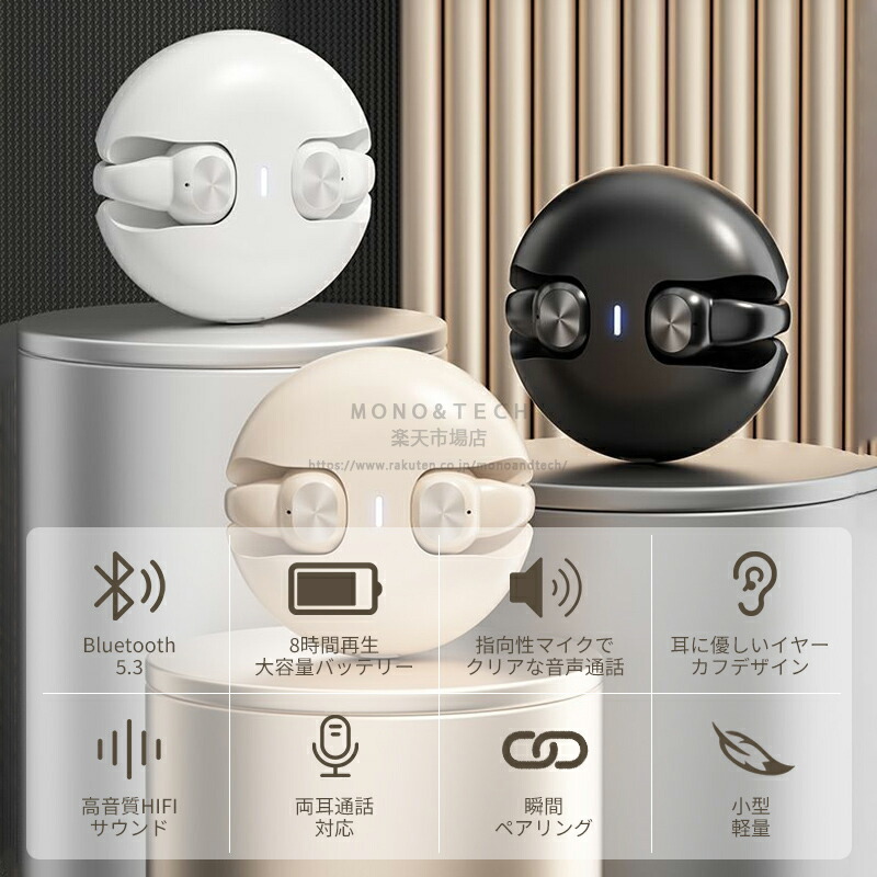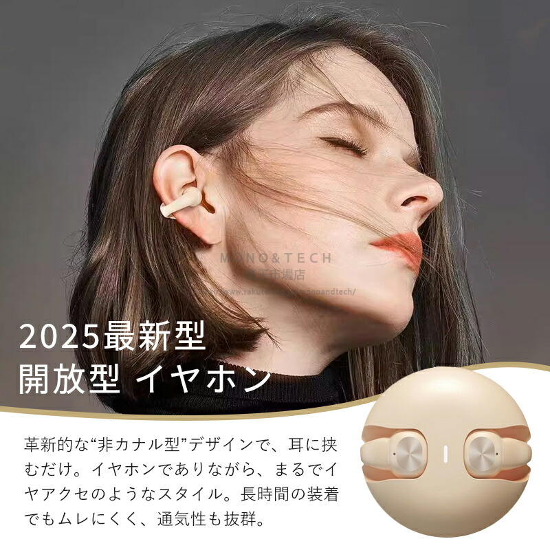 ワイヤレスイヤホン 骨伝導イヤホン 耳 ホワイト ベージュ ブラック