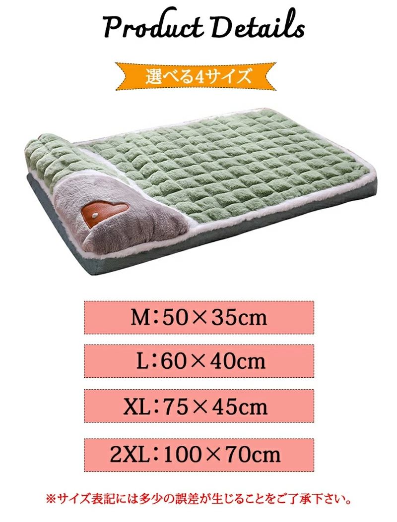 ペットベッド 猫ベッド ねこ 枕付き グリーン グレー ブラウン M L XL 2XL