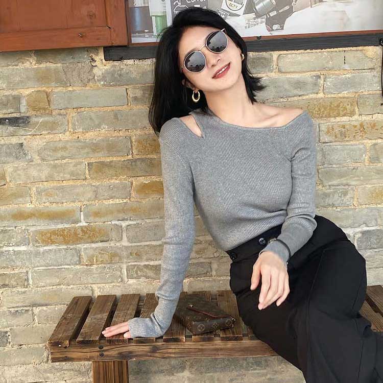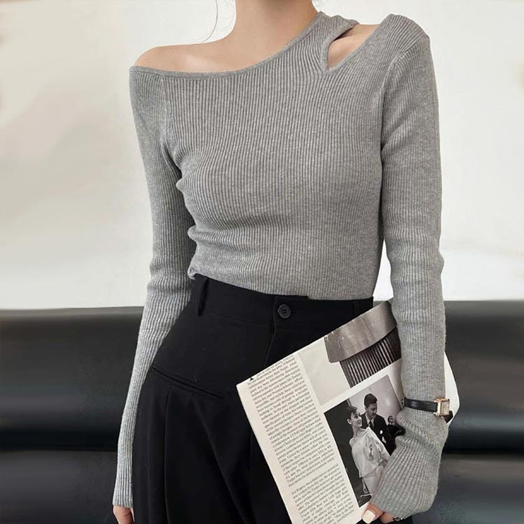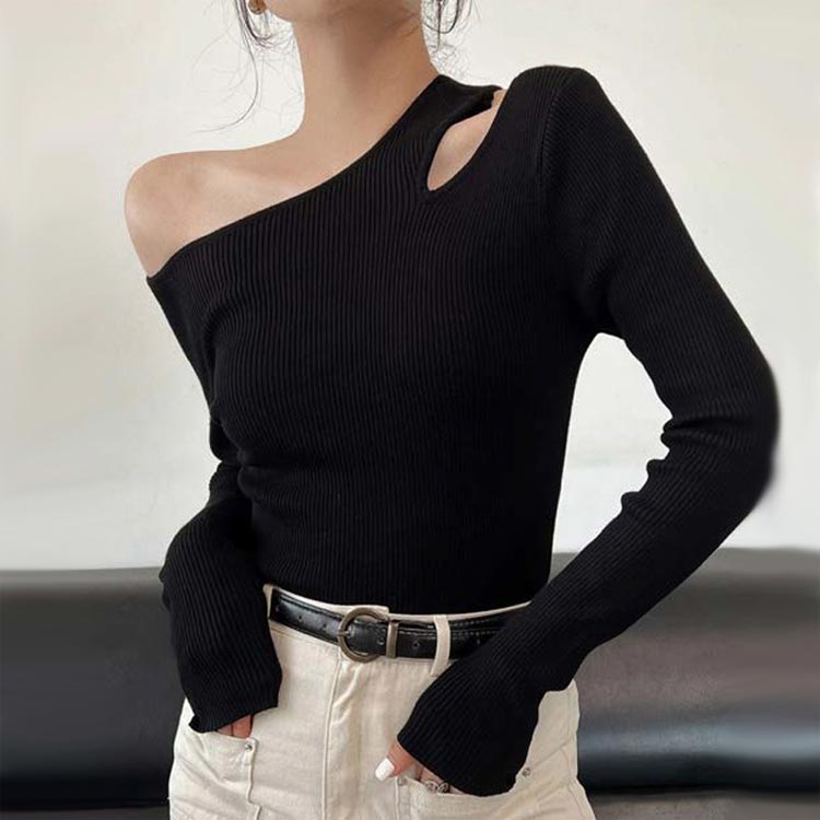 ワンショルダー ニット トップス レデ レディースファッション 人気 黒 灰 コーヒー
