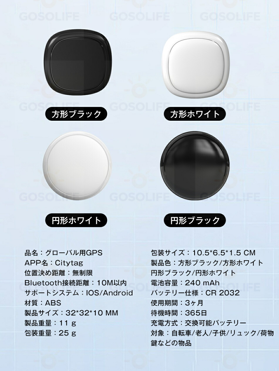 Citytag GPS発信機 Appl 方形ブラック 方形ホワイト 円形ブラック 円形ホワイト