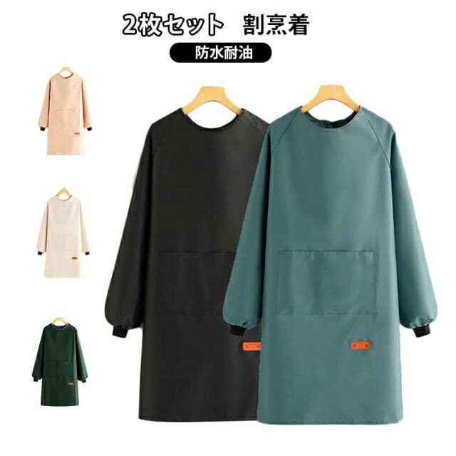 2枚セット 割烹着 エプロン 袖付き キッチン用品 食器 調理器具 超目玉商品 黒2枚 ピンク2枚 ブルー2枚 緑2枚 ベージュ2枚 黒+ピンク ピンク+ブルー ブルー+緑 緑+ベージュ ベージュ+黒 黒+ブルー ブルー+ベージュ