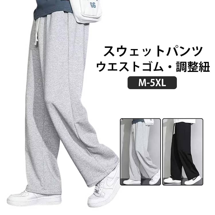 イージーパンツ ストレート ロングパン メンズファッション 新登場! グレー ブラック M L XL 2XL 3XL 4XL 5XL