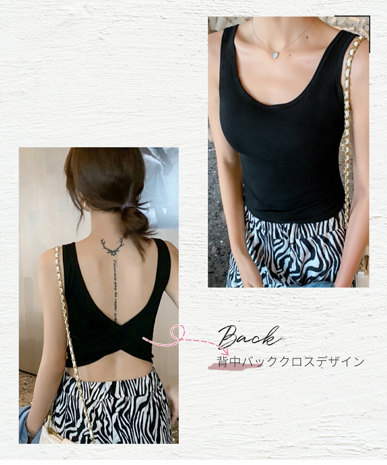 前はシンプルだけど、背中バッククロスデザインで大人雰囲気UPします!