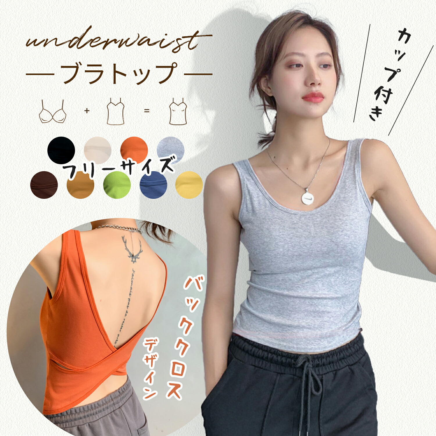ブラトップ ナイトブラ キャミソール ノーワイヤー 背中見せ 背中あき カップ付き ブラキャミ ノーマル バッククロス カップ付きインナー タンクトップ ルームウェア ヨガ レディース 楽 スポーツ