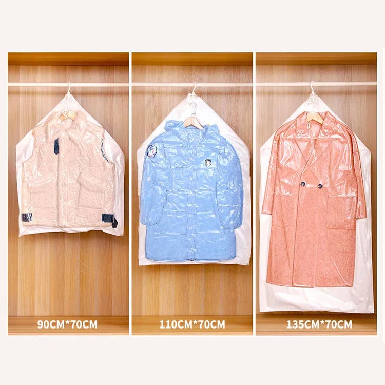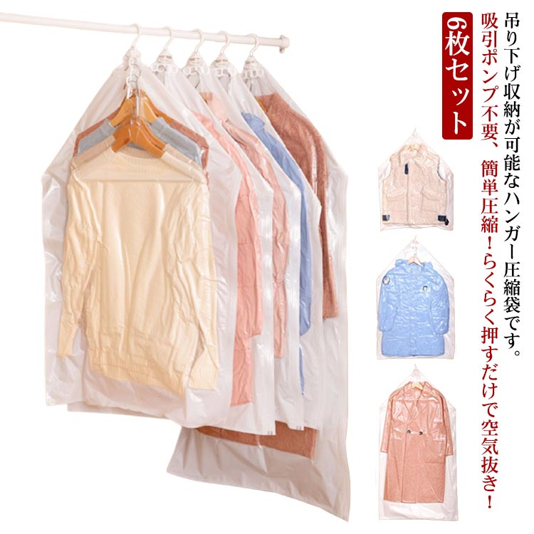 6枚セット 吊るせる衣類圧縮袋 衣類圧縮袋 吊るせる 135*70cm 110*70cm 90*70cm 手押し 圧縮袋 手動 衣類圧縮 コート 洋服 クローゼット収納 押入れ収納 ダウンジャケット