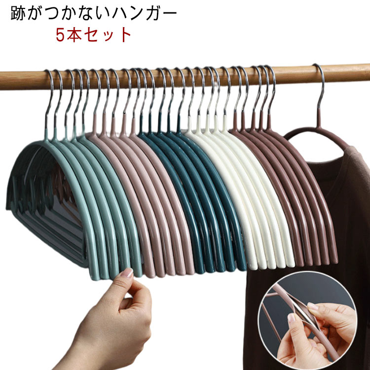 ハンガーセット 5本組 滑りにくい す イエロー ピンク ホワイト ブルー グリーン ブラウン オレンジ