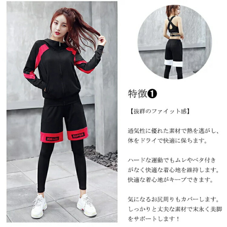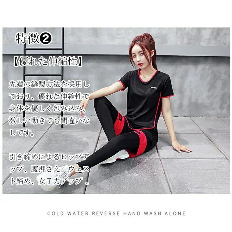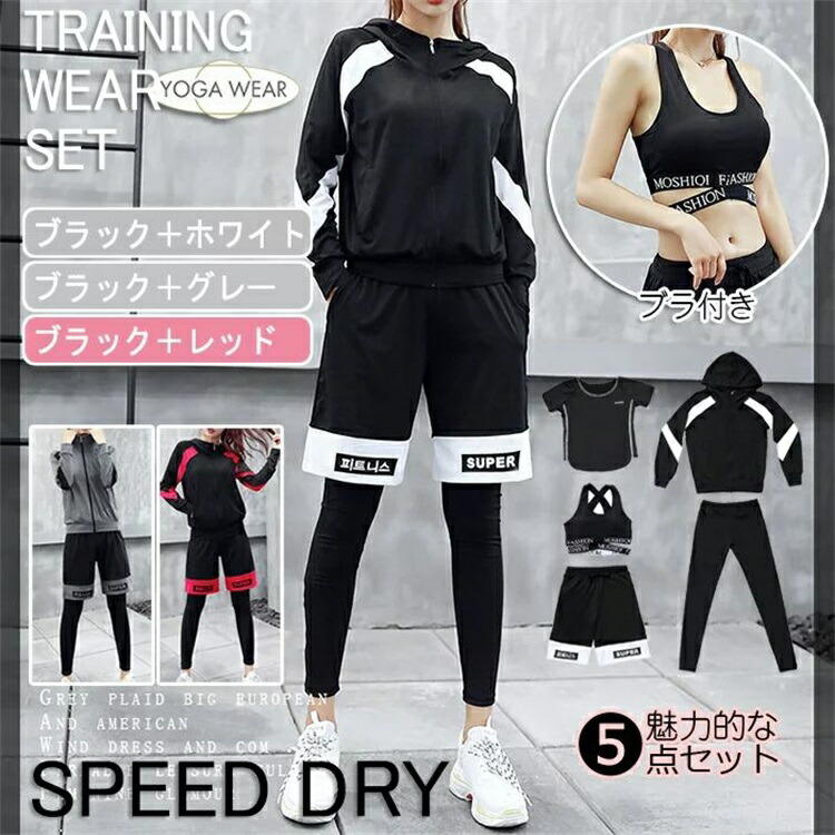 スポーツウェア レディース セット 上 フィットネス トレーニング ウェア レディースウェア その他 通販 ブラックxホワイト ブラックxグレー ブラックxレッド M L XL 2XL 3XL