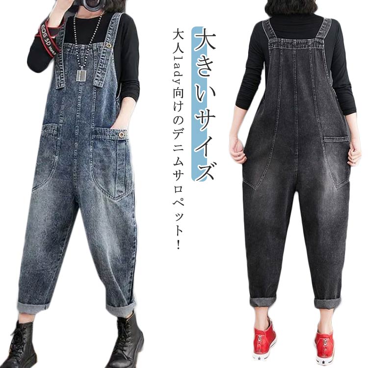 デニムサロペット パンツ オールインワ オールインワン サロペット 新作 ブルー ブラック M L XL 2XL