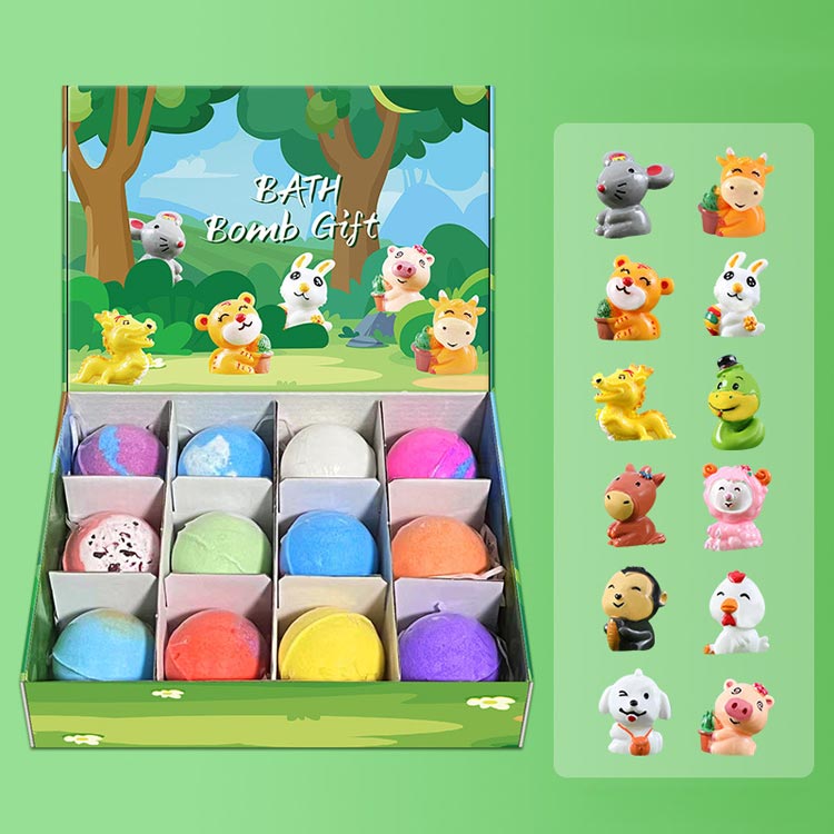こどもバスボムの中には、動物おもちゃが入っています*赤ちゃんが誤飲することを防ぐため、入浴時は必ず大人が付き添ってください。バスボムが泡立つと、かわいい動物のおもちゃが徐々に現れます。