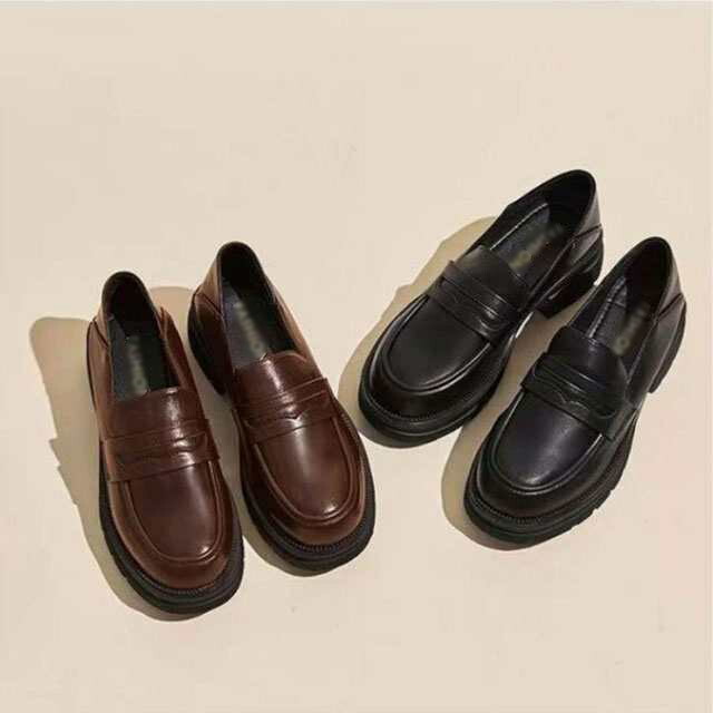 ローファー 学生 厚底 ヒール レディ 靴 豊富 ブラック ブラウン 35 36 37 38 39 40