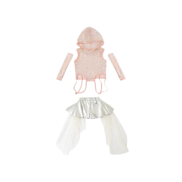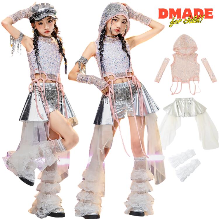 シルバー キッズ ダンス 衣装 セット キッズ ベビー マタニティ 続々登場 110cm 120cm 130cm 140cm 150cm 160cm 170cm 180cm 2点セット 3点セット 4点セット 5点セット メッシュトップス(袖カバー付き) チュール付き短パン単品 キャミソール単品
